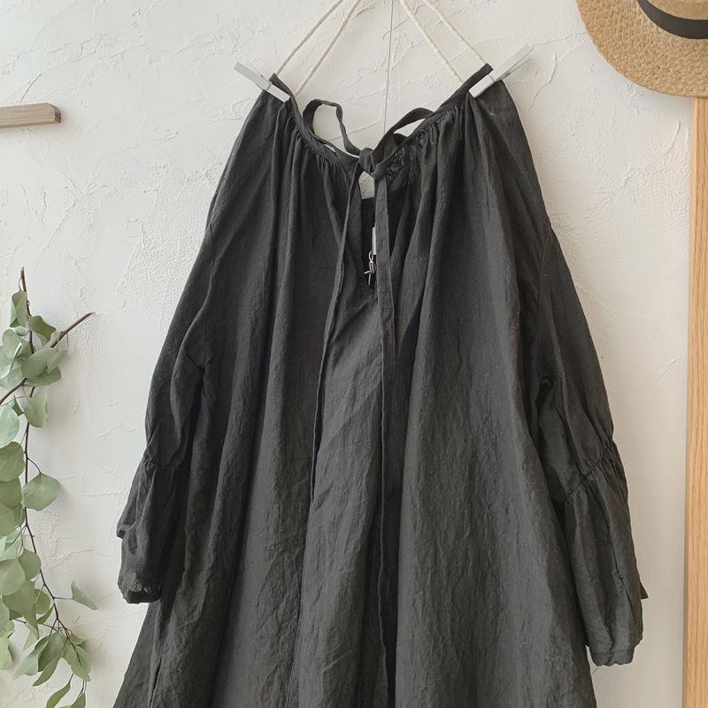 mifumi/アトリエ刺繍 森のオーバーワンピース・黒