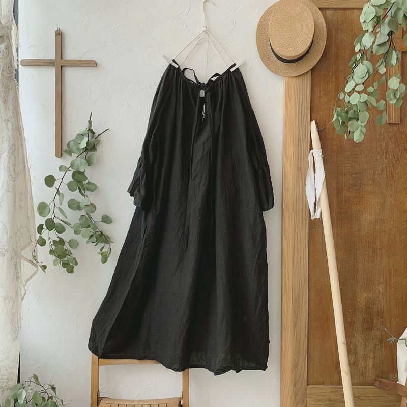 mifumi/アトリエ刺繍 森のオーバーワンピース・黒 [MIF210865]