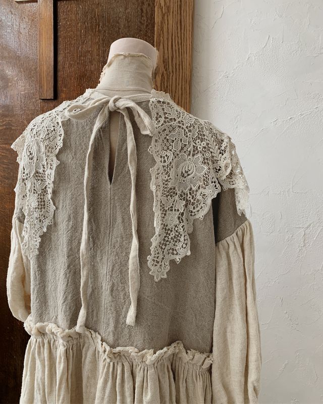 繊細で美しいフランスアンティークの付け襟をあしらい、
