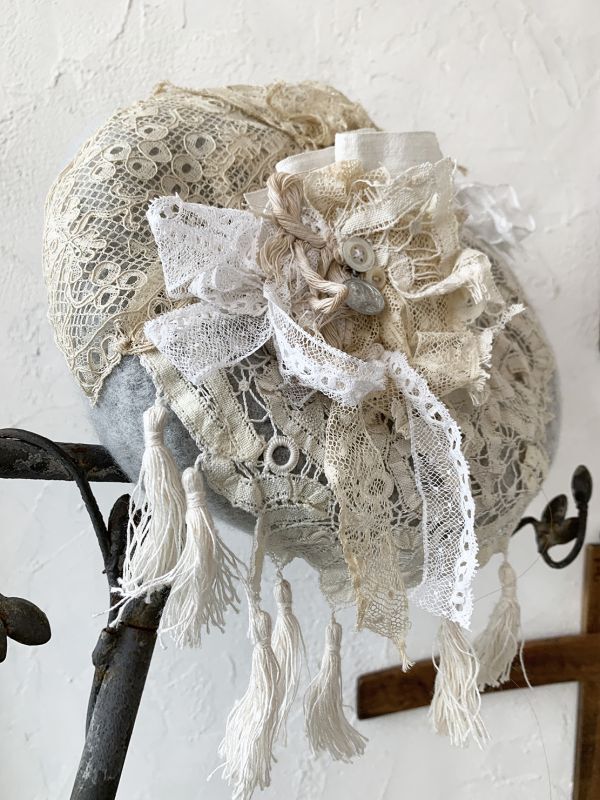 やわらかいウールベレーに、アンティークレースやアンティークメダイ、
