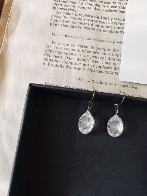 caco grass works/ヴィンテージガラスボタンのピアス・D