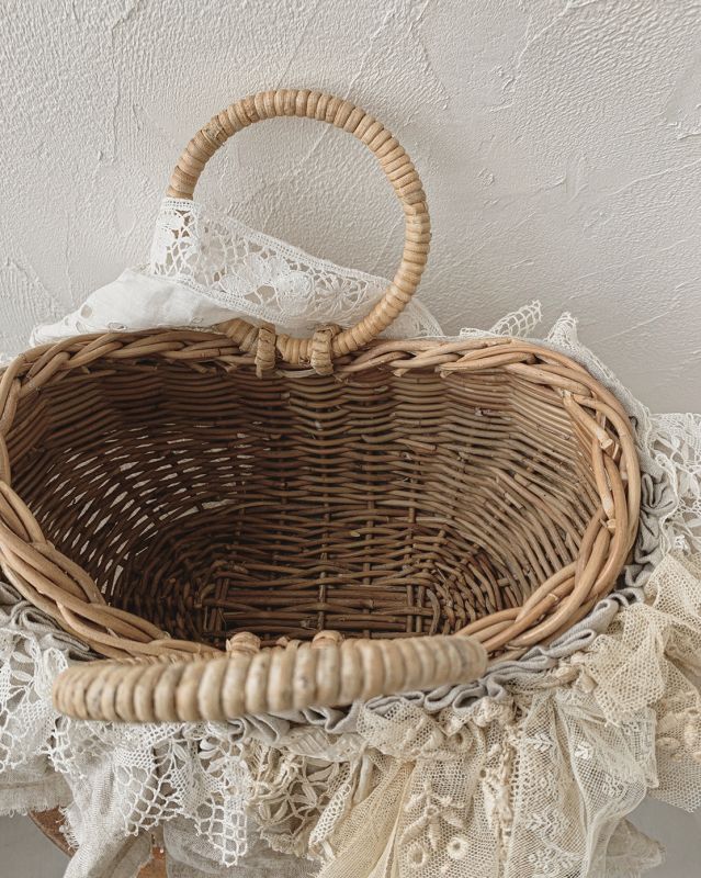 pollenbienco/アンティークレースのラウンドハンドルバスケット [POL220]