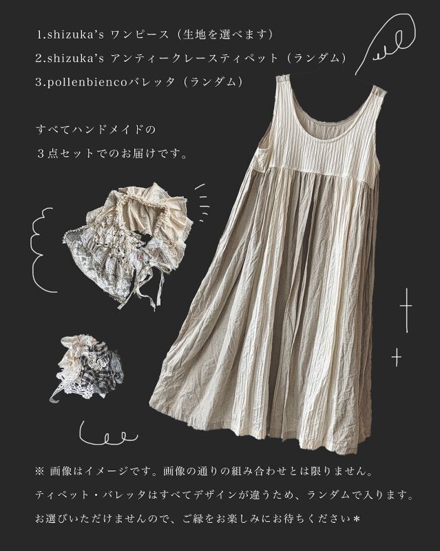 ワンピースの種類のみお選びいただけます。ティペットとバレッタは