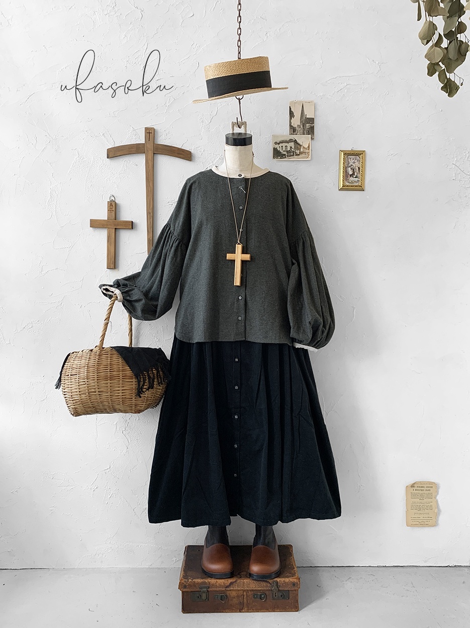 ubasoku/バイカラー起毛パフ袖ブラウス・チャコール [BNT240905]