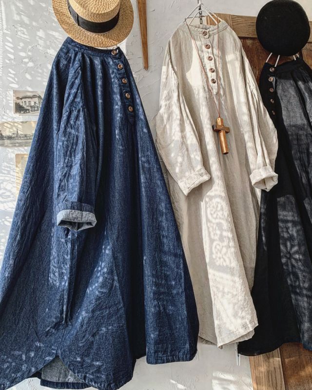 生成りと黒はリネン生地、デニムはコットン生地になります。