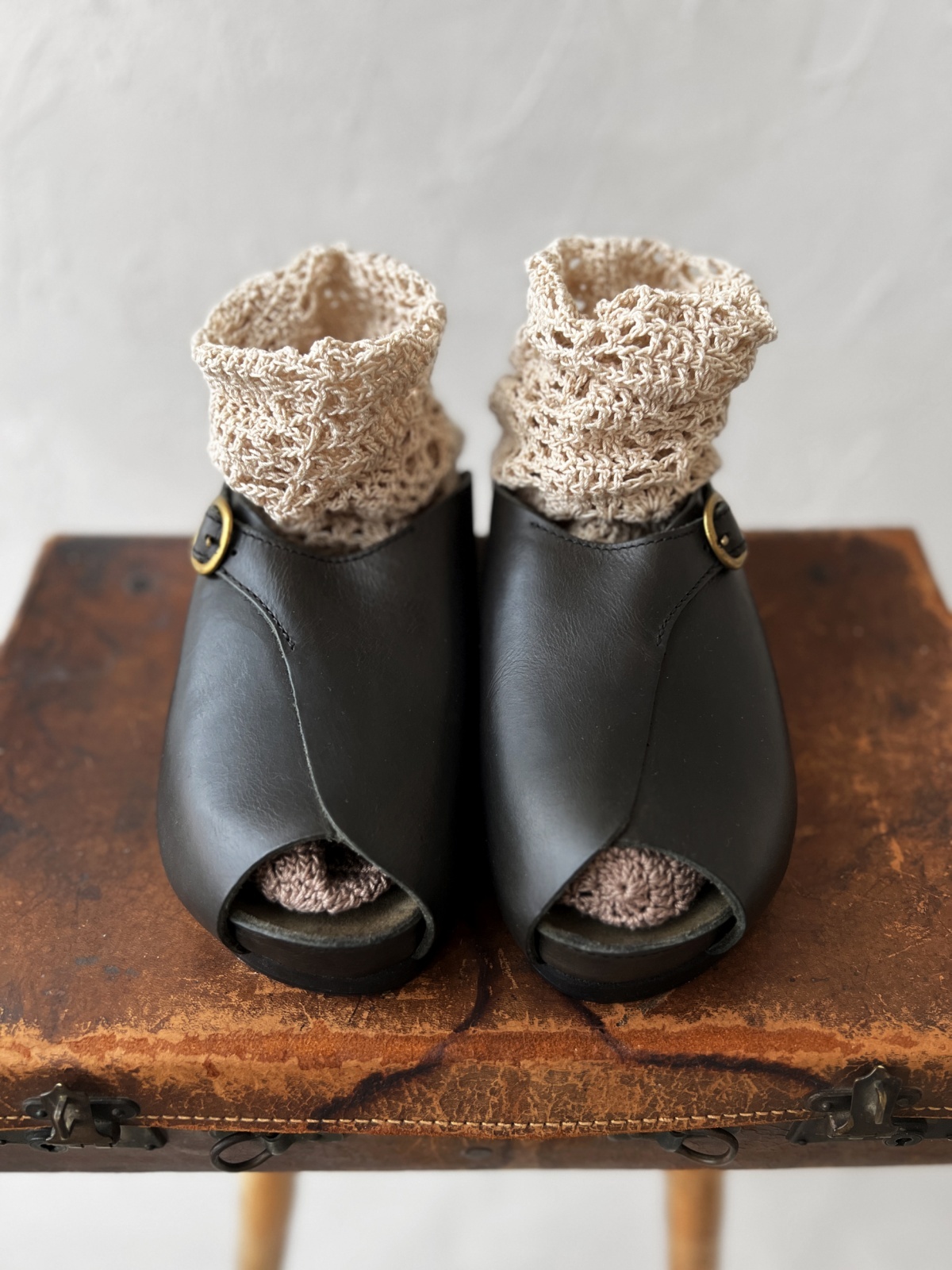オープントゥなのでカラーや柄物ソックスを覗かせても