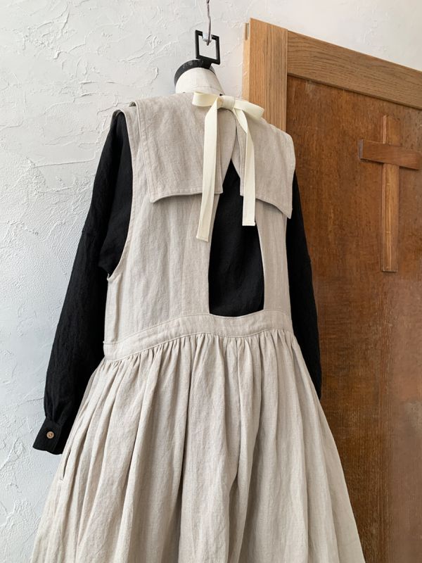 ノースリーブロングドレスです。襟は前後着用OKなので、
