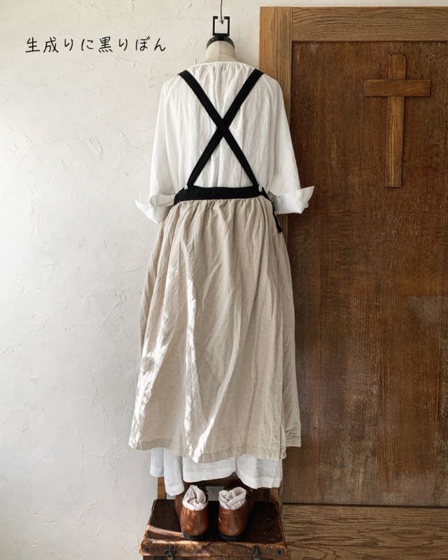Avenue/エプロンワンピース・生成りに黒りぼん