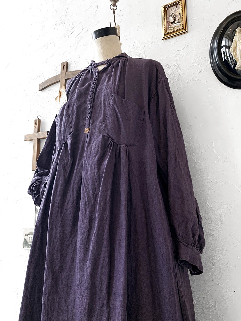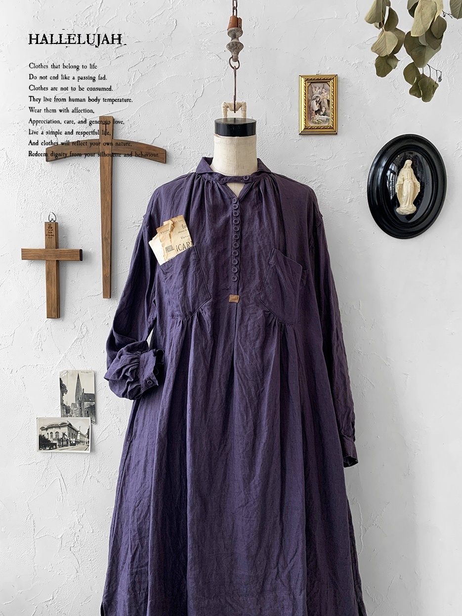 HALLELUJAH/1890's Bourgeron 羊飼いシャツワンピース・purple