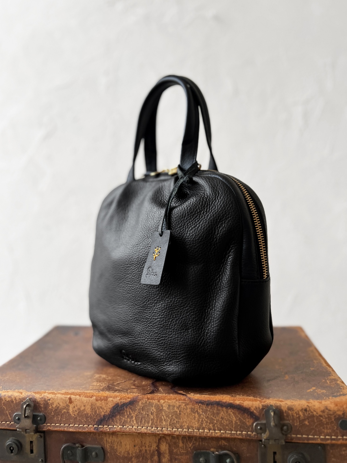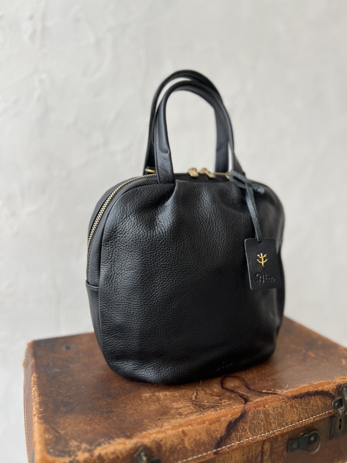 丸っこい形が可愛い本革バッグです。