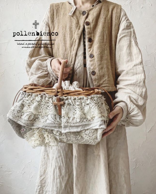 pollenbienco/アンティークレースのウッドハンドルバスケット・B [POL230901]