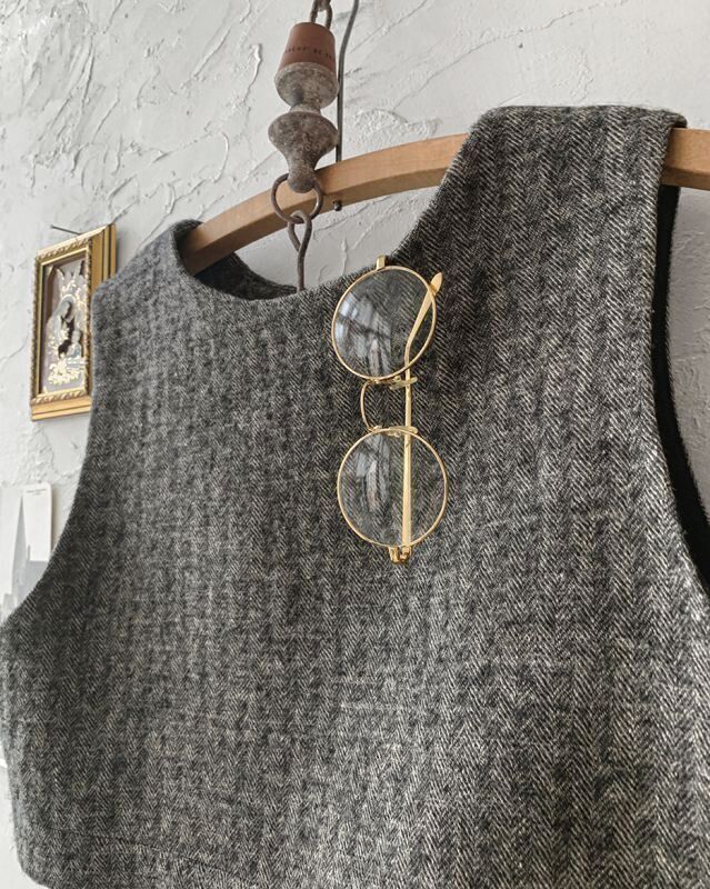 MARCHE' DE SOEUR/シェットランドウールへリンボーン ちびベスト・チャコール