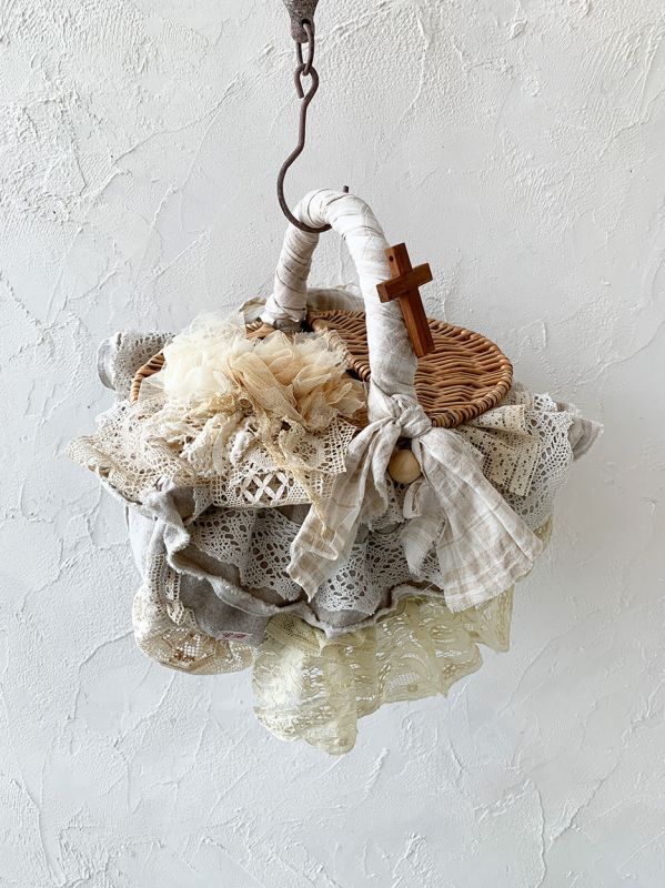 pollenbienco/アンティークレースのカバーバスケット [POL240202]
