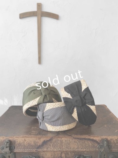 幹の皮を加工した天然素材で作った幅広のカチューシャです。