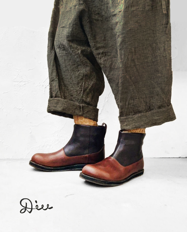 Diu/バイカラーショートブーツ・ダークブラウン [DIU240906]