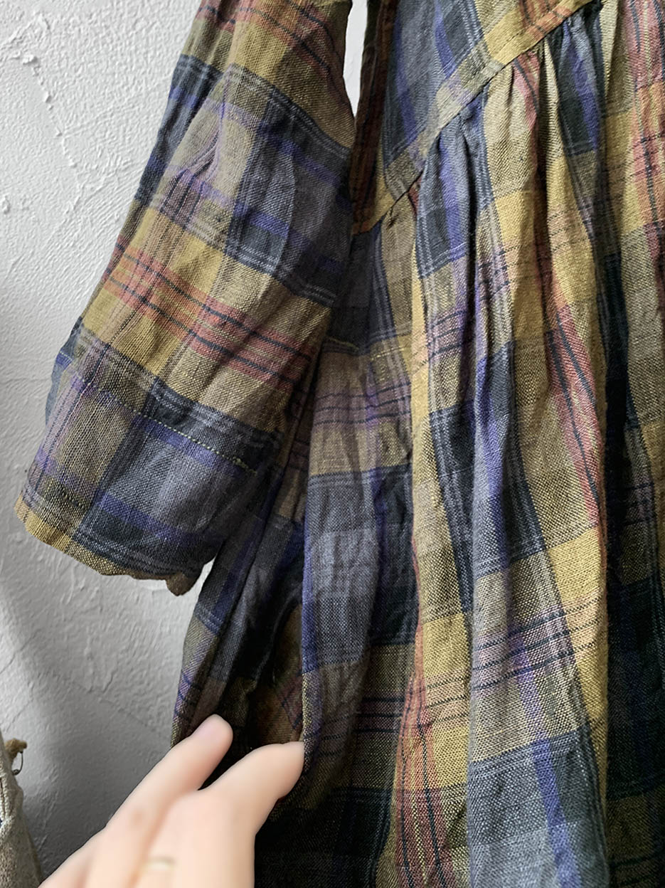 MARCHE' DE SOEUR/ラッフル襟のワンピース・カーキチェック [MDS240927]