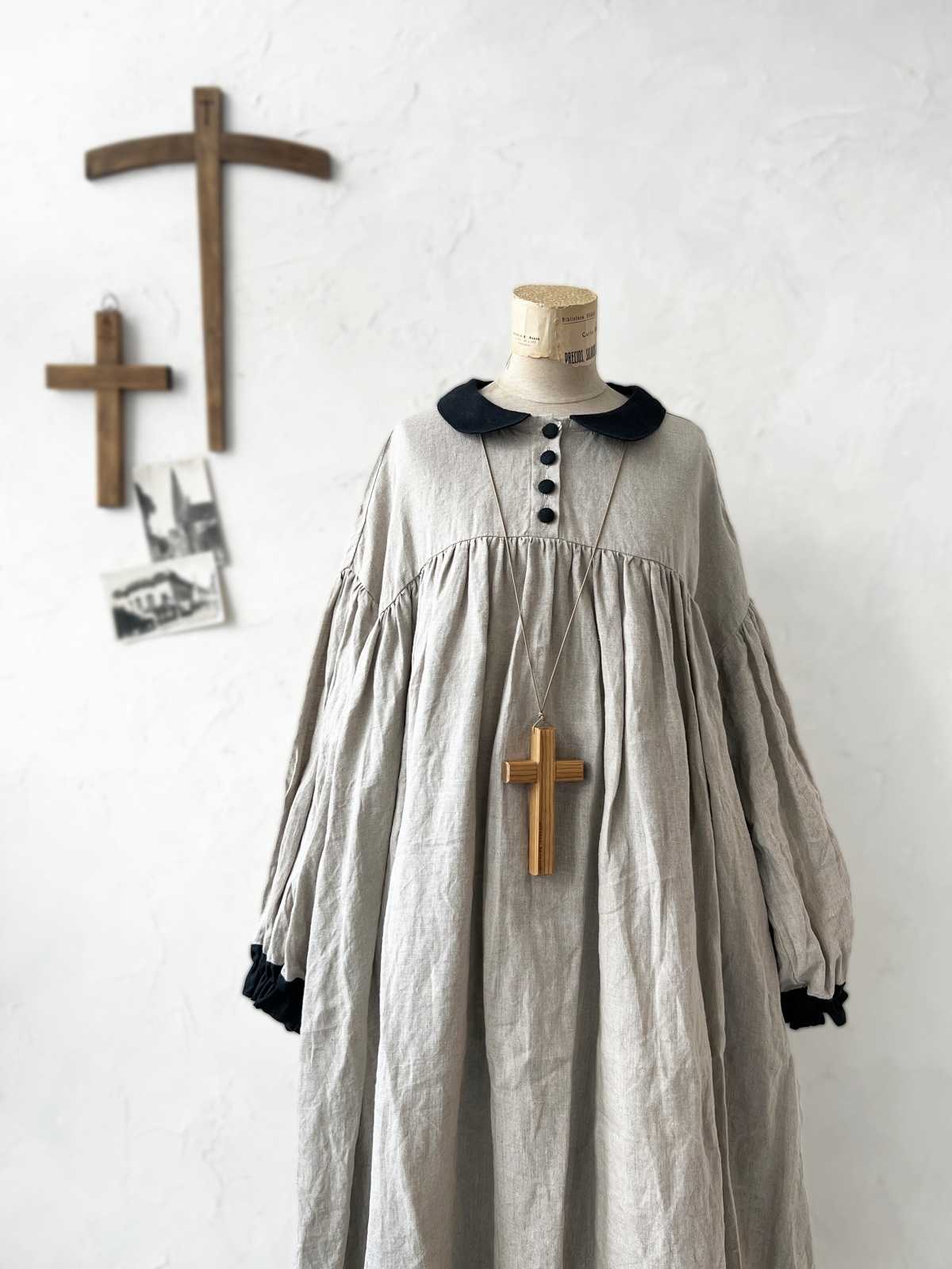 Avenue/丸襟ギャザーワンピース・生成り [AVE241202]