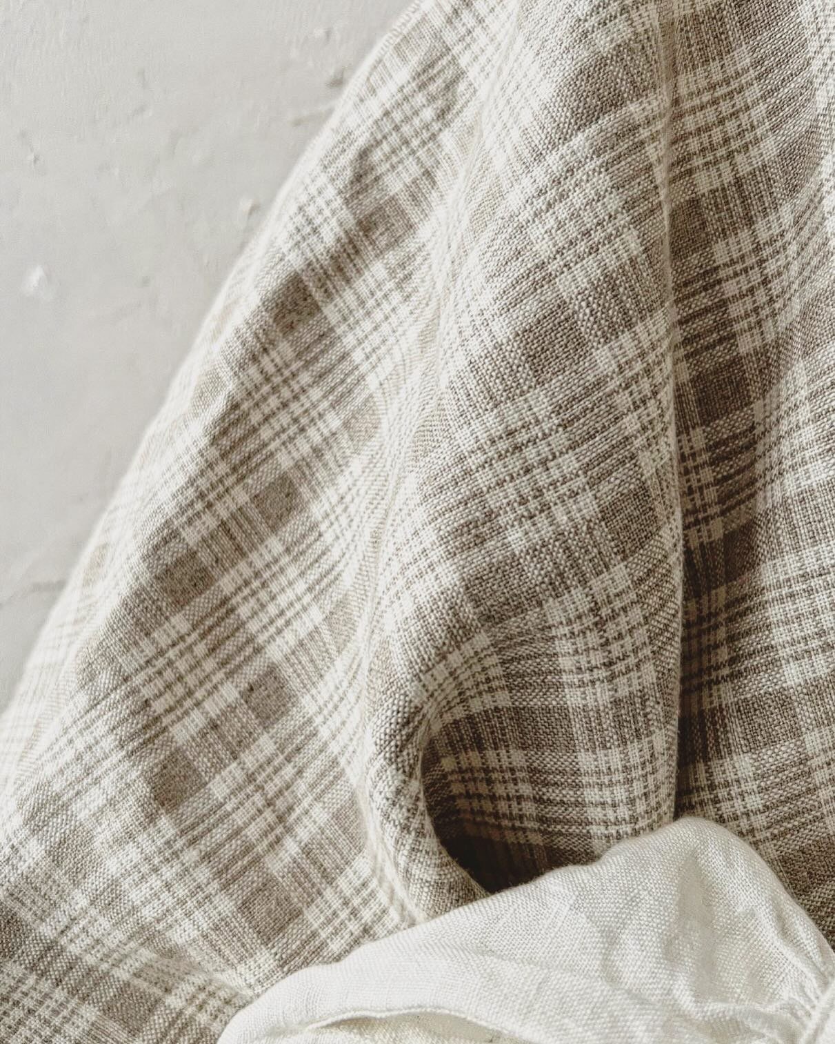 フロントは生成りのりぼん。普通地チェックリネンで、