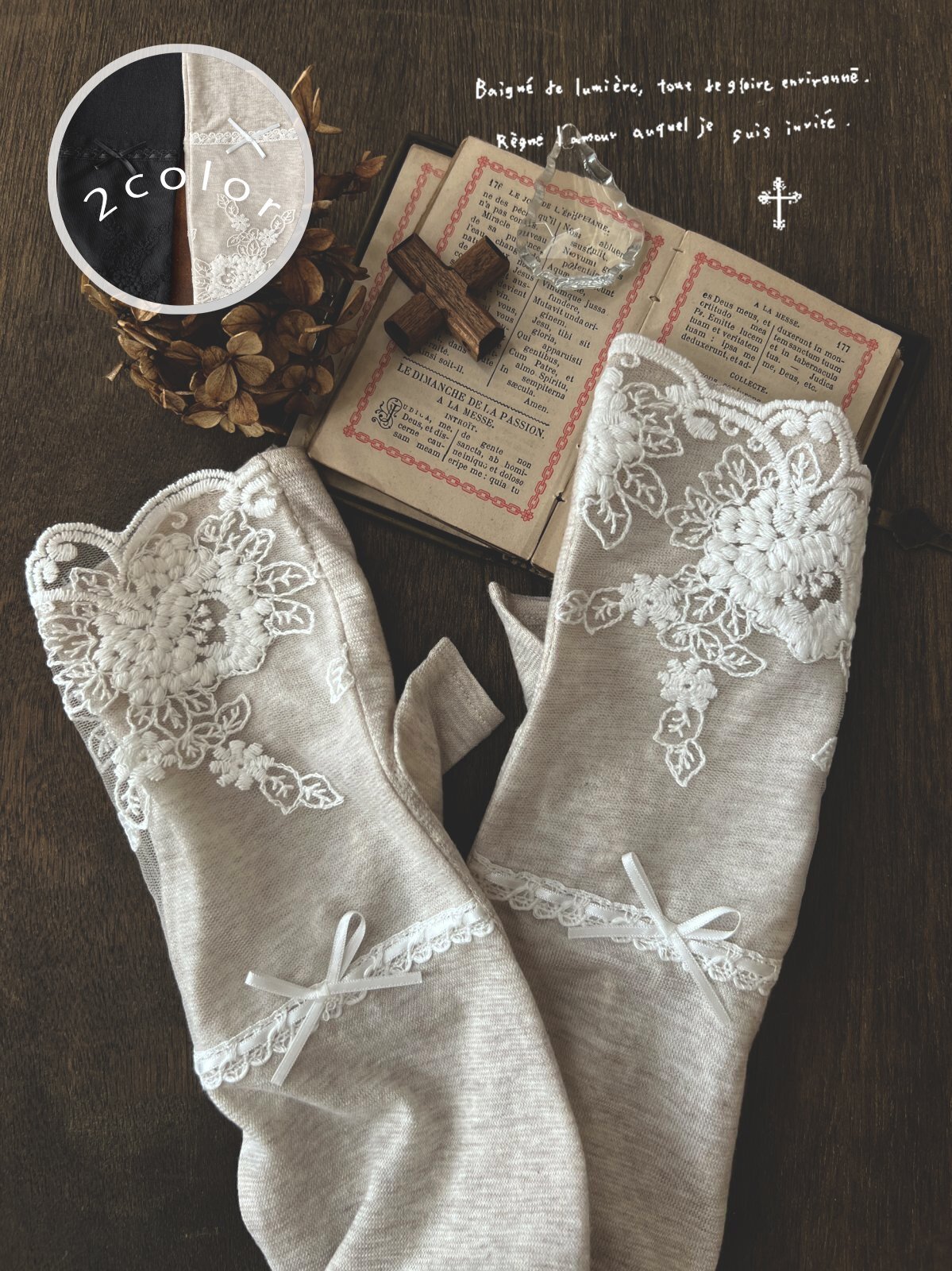 花柄のレースを指先にあしらい、