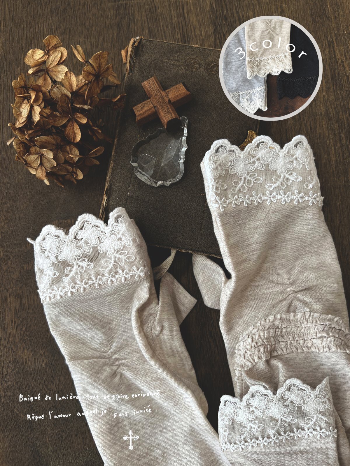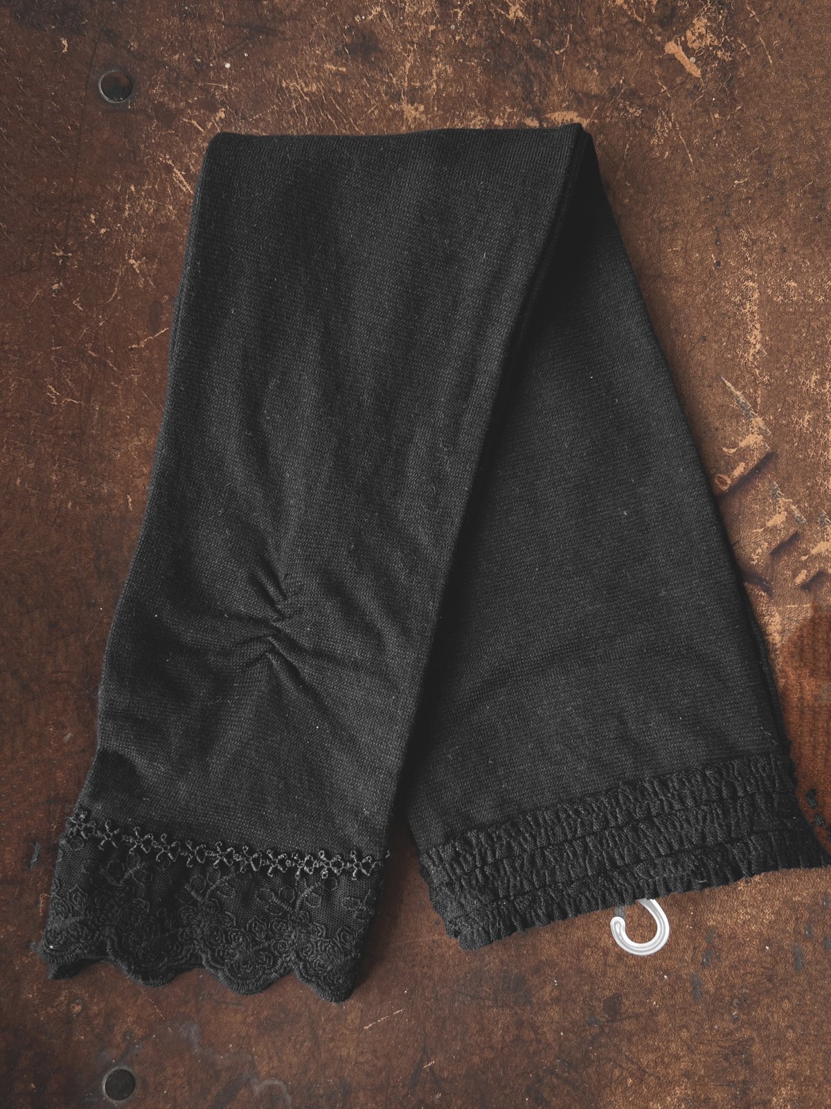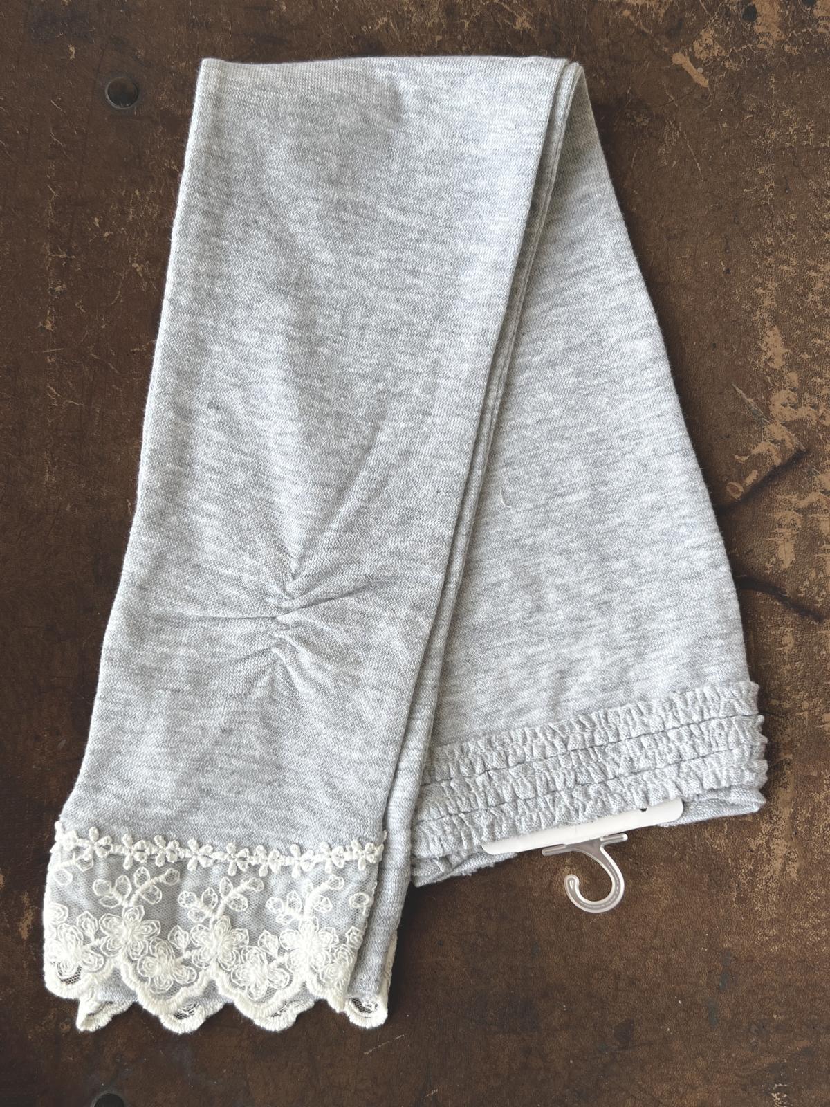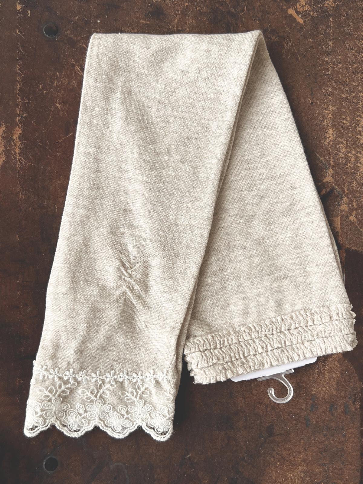指先はレース、上部は3段の小さなギャザーになっています。