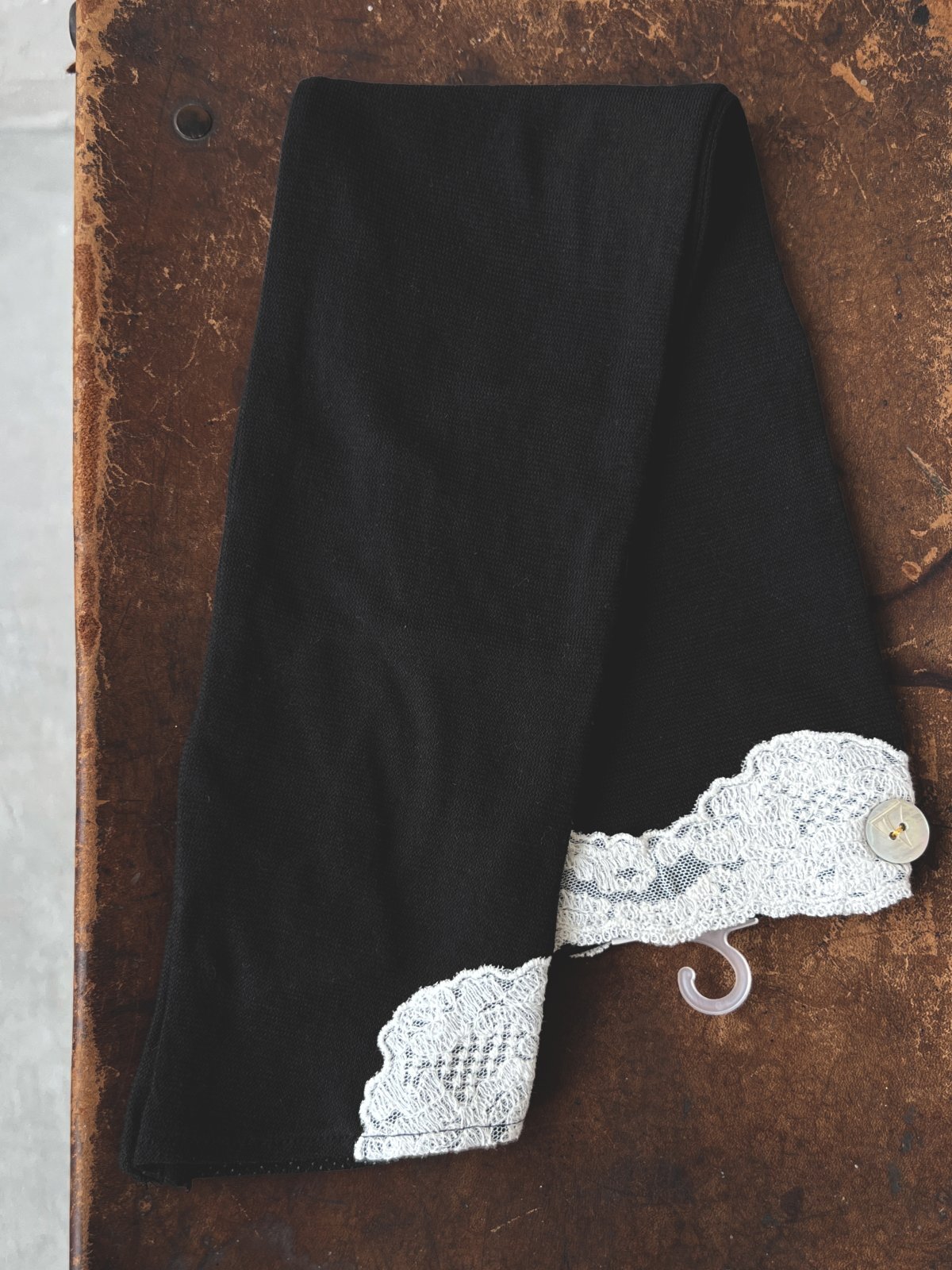 指先と肩側にレース、シェルボタンがアクセントの