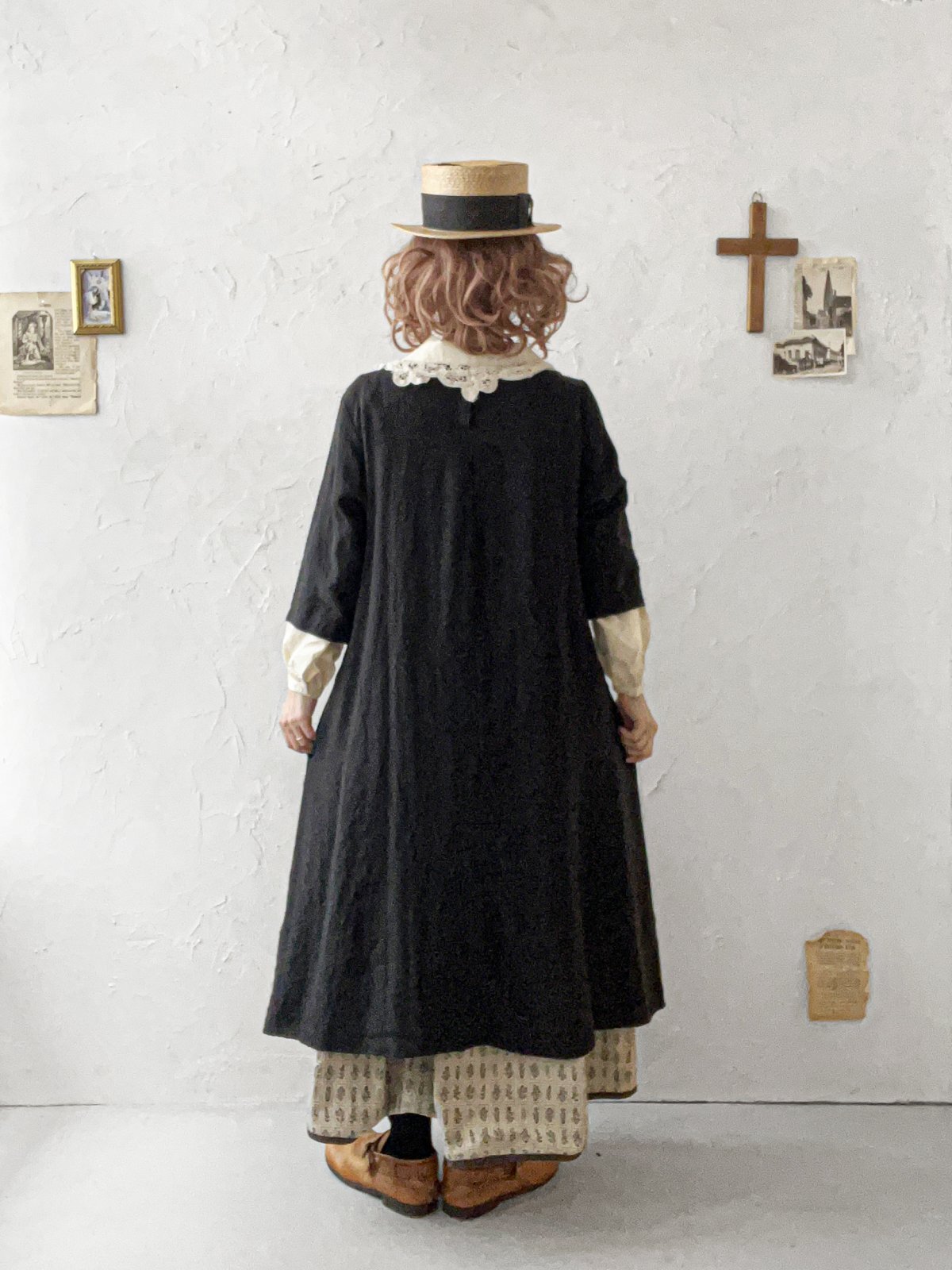 Re:born/リネン七分袖ワンピース・黒 [REB250702]
