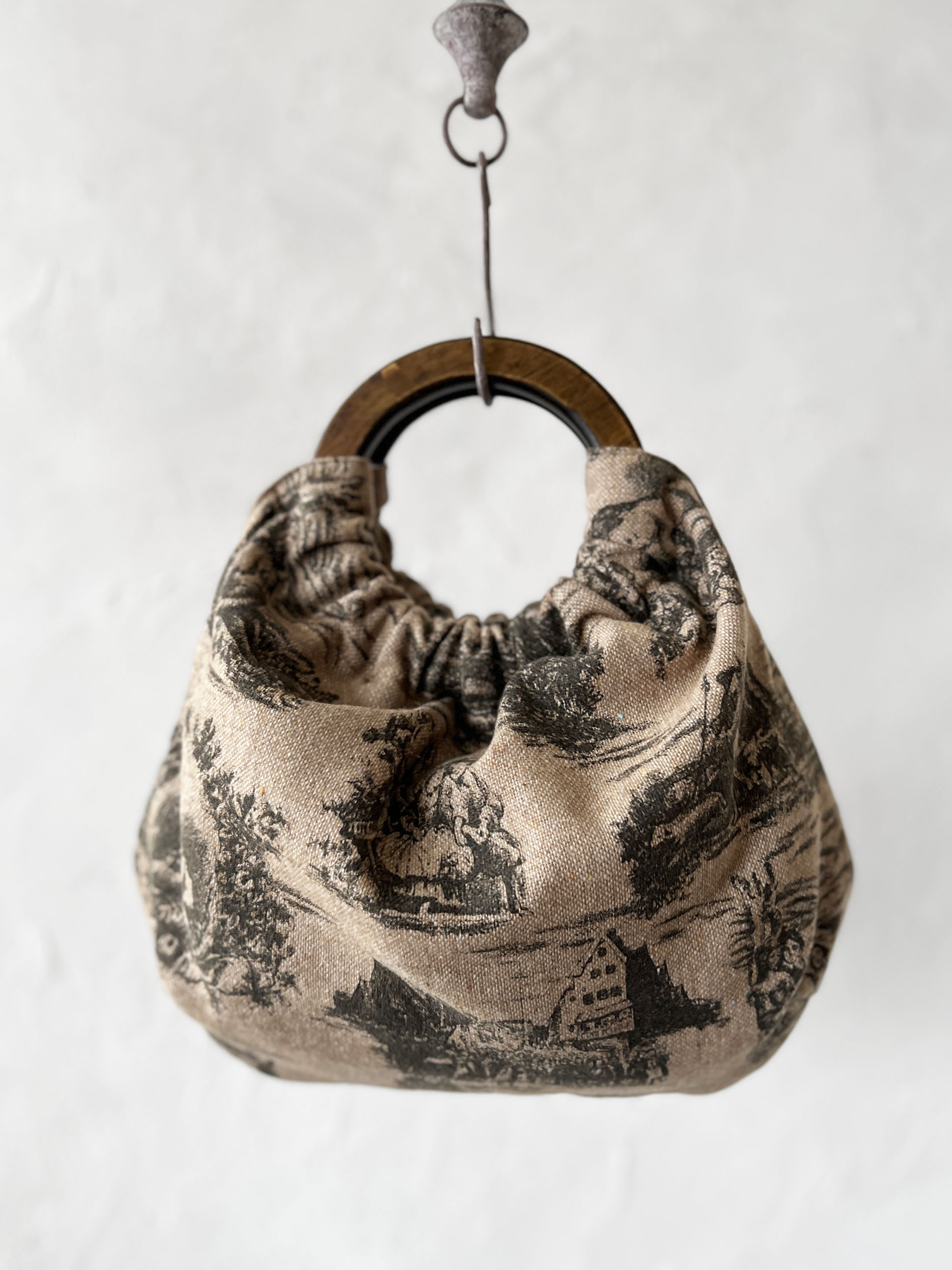 貴婦人のプリント柄がクラシカルで素敵なバッグ。