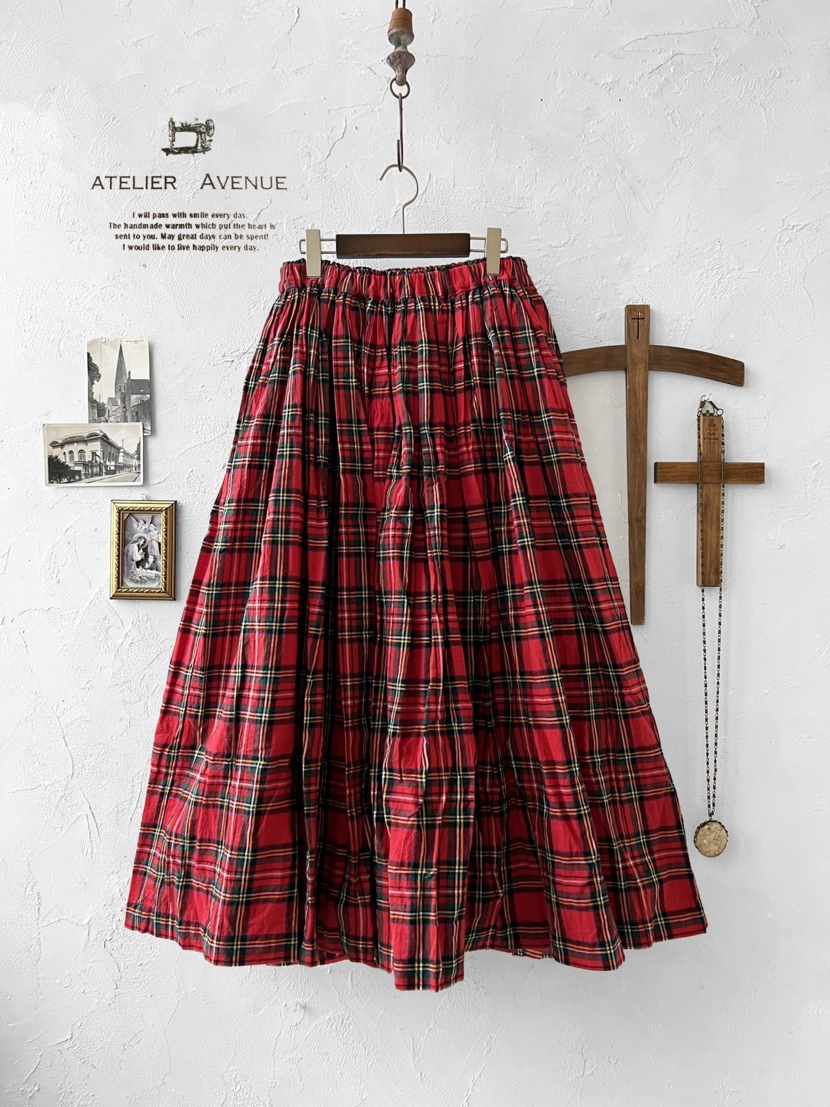 Avenue/ギャザースカート・赤チェック [AVE250902]