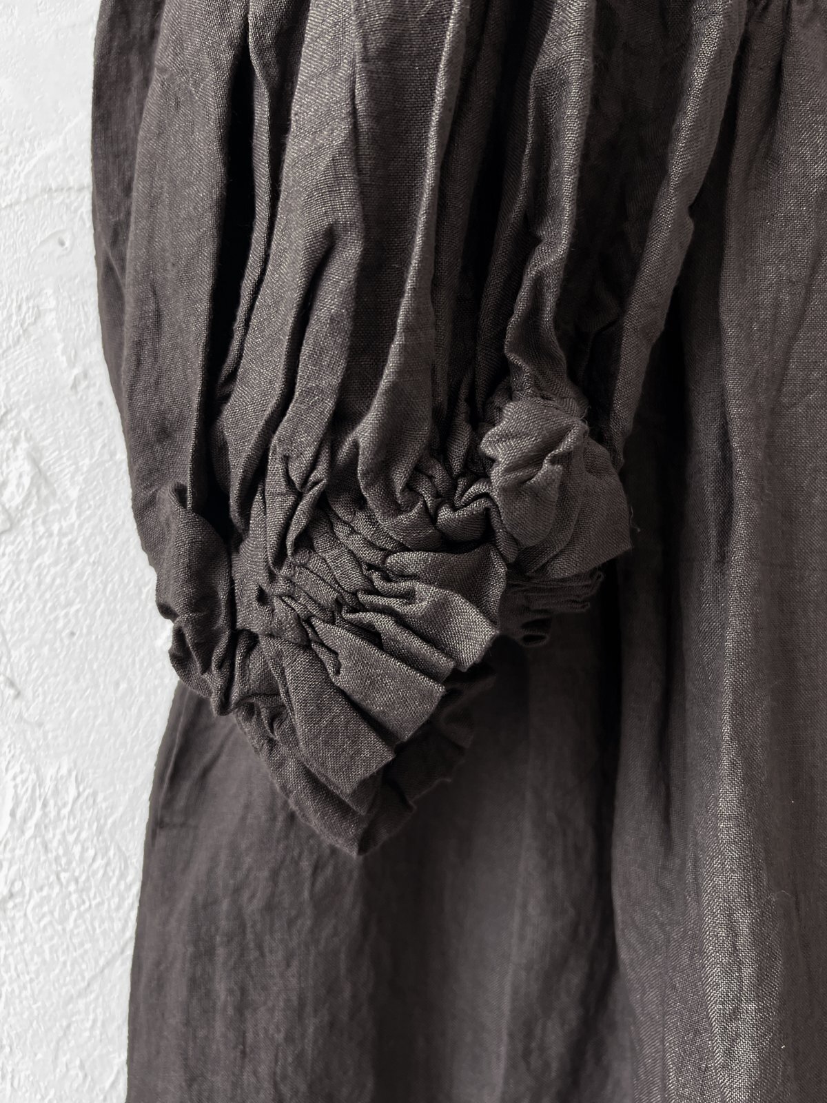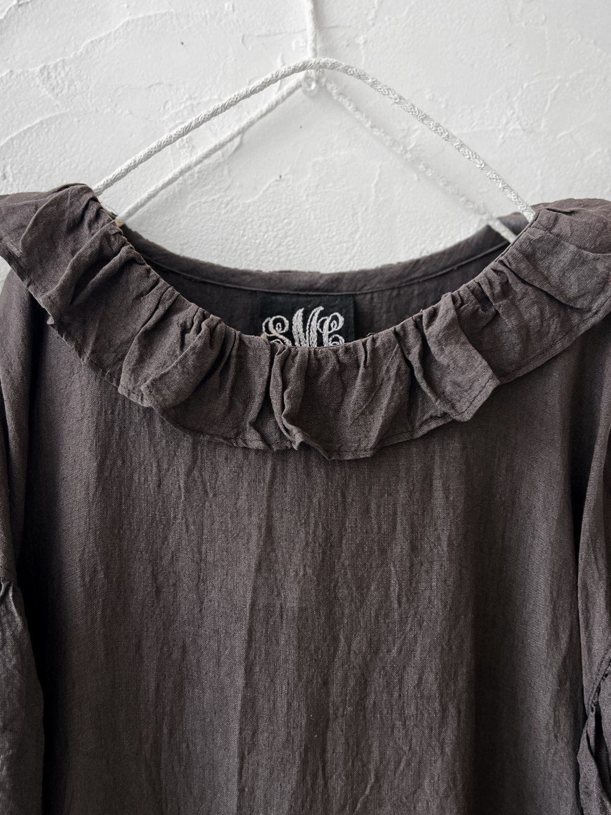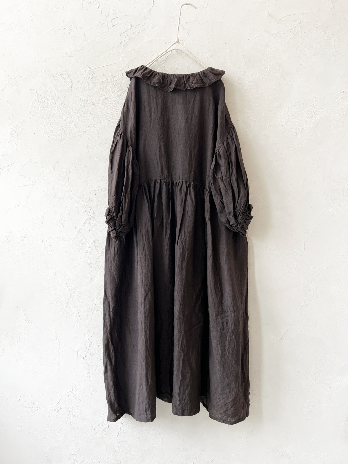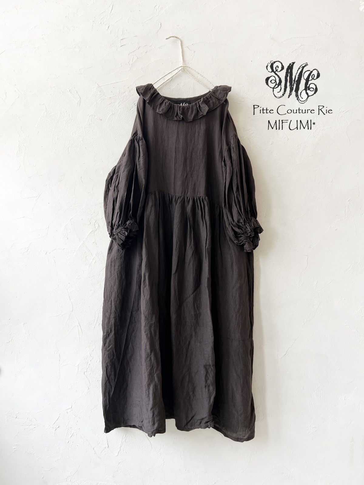 mifumi/フリル襟ドロップショルダーpuffワンピース・こげ茶