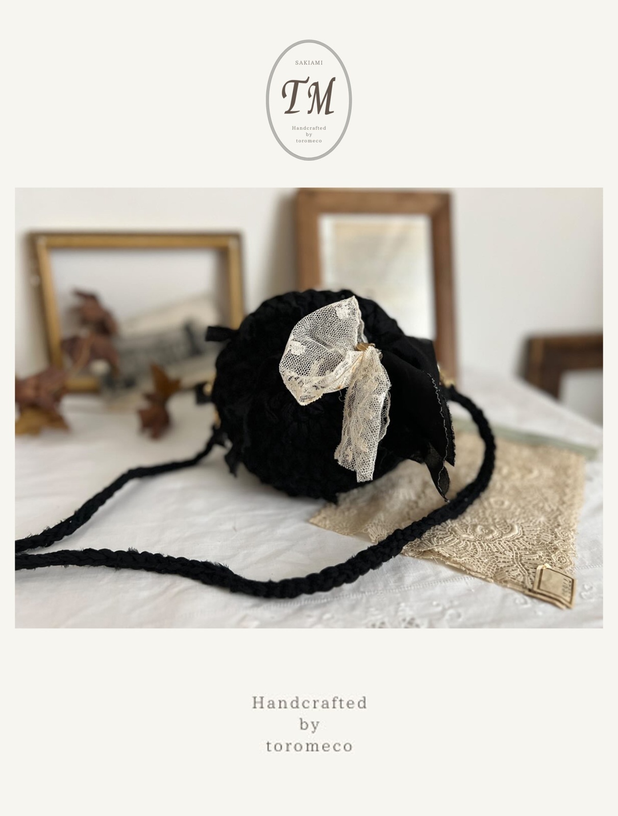 toromeco/裂き編みマカロンポシェット・black [TOR251008]
