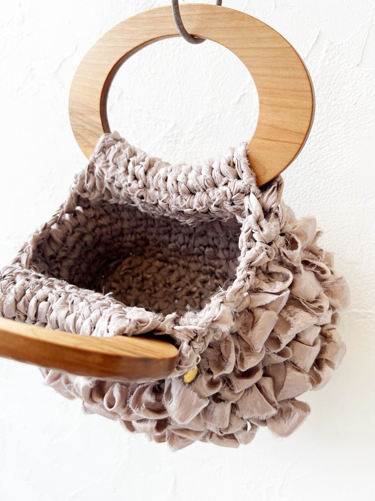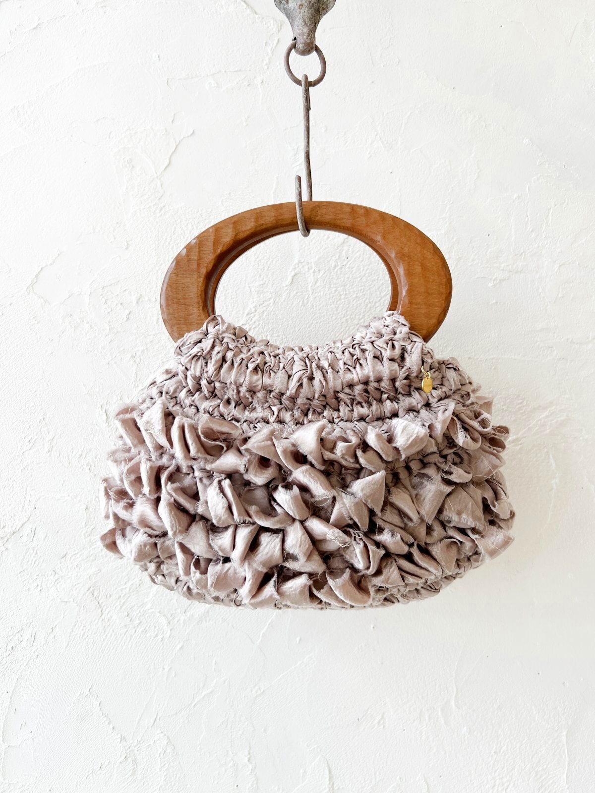 toromeco/裂き編みウッドハンドルバッグ・antique pink