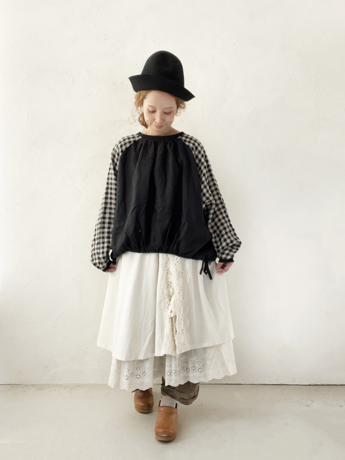 ubasoku/0201 刺繍の裾りぼんプルオーバー・ギンガム [BNT251016]