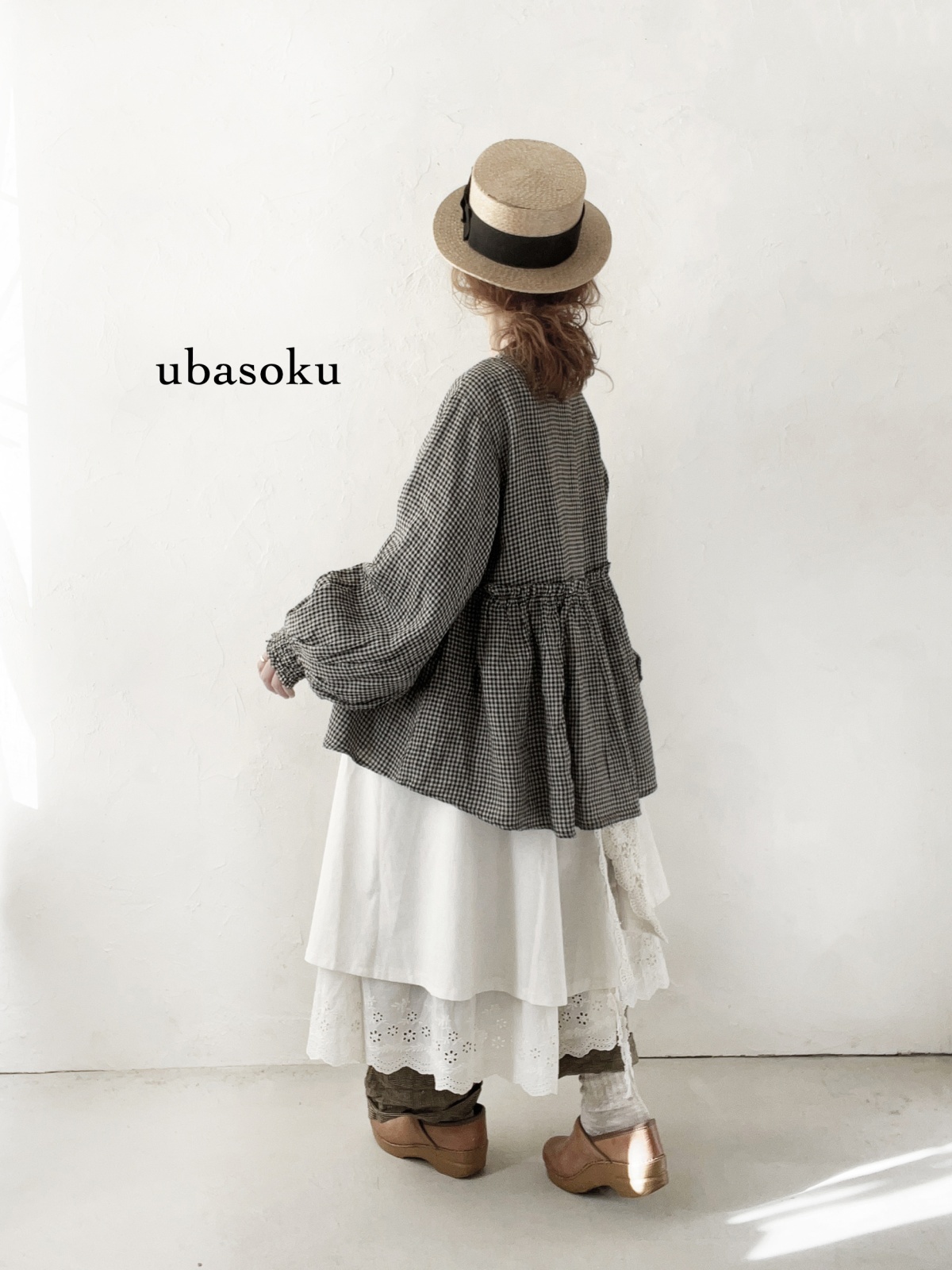 ubasoku/0107 比翼ギャザーブラウス・プチギンガム