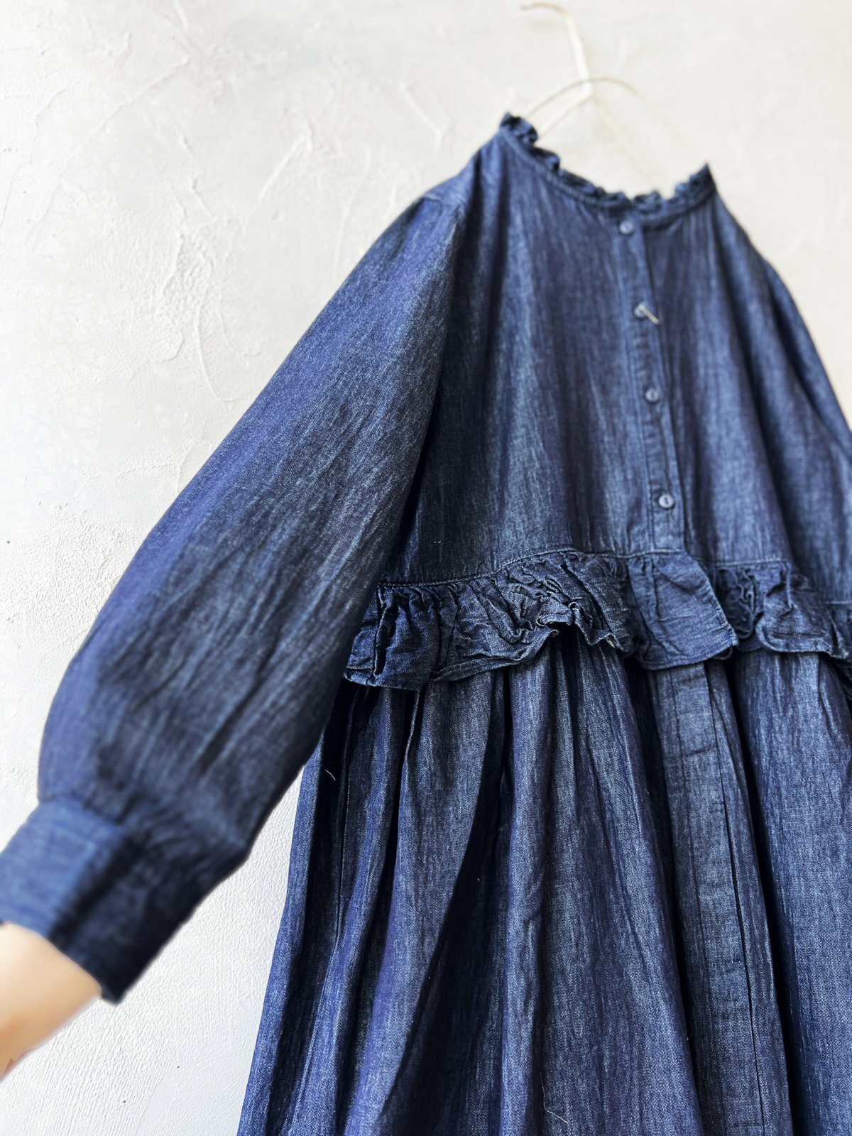 ubasoku/0124 デニムフリルワンピース・インディゴ [BNT251010]