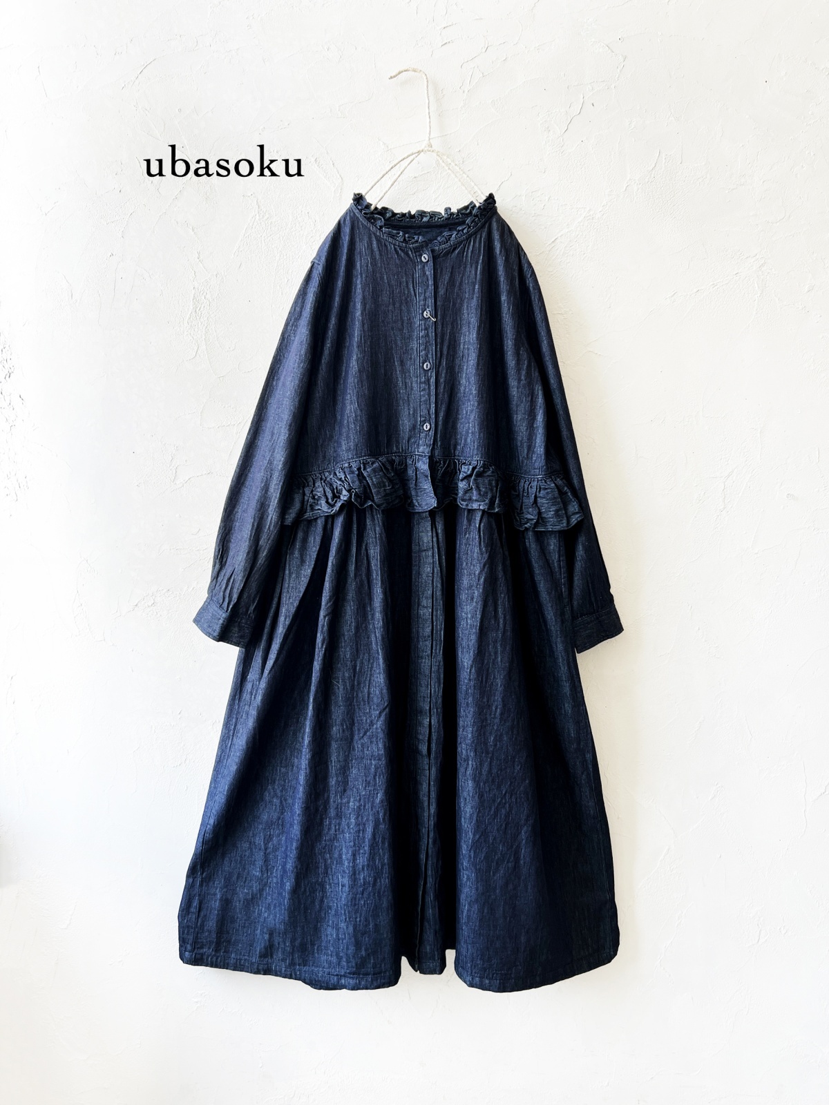 ubasoku/0124 デニムフリルワンピース・インディゴ