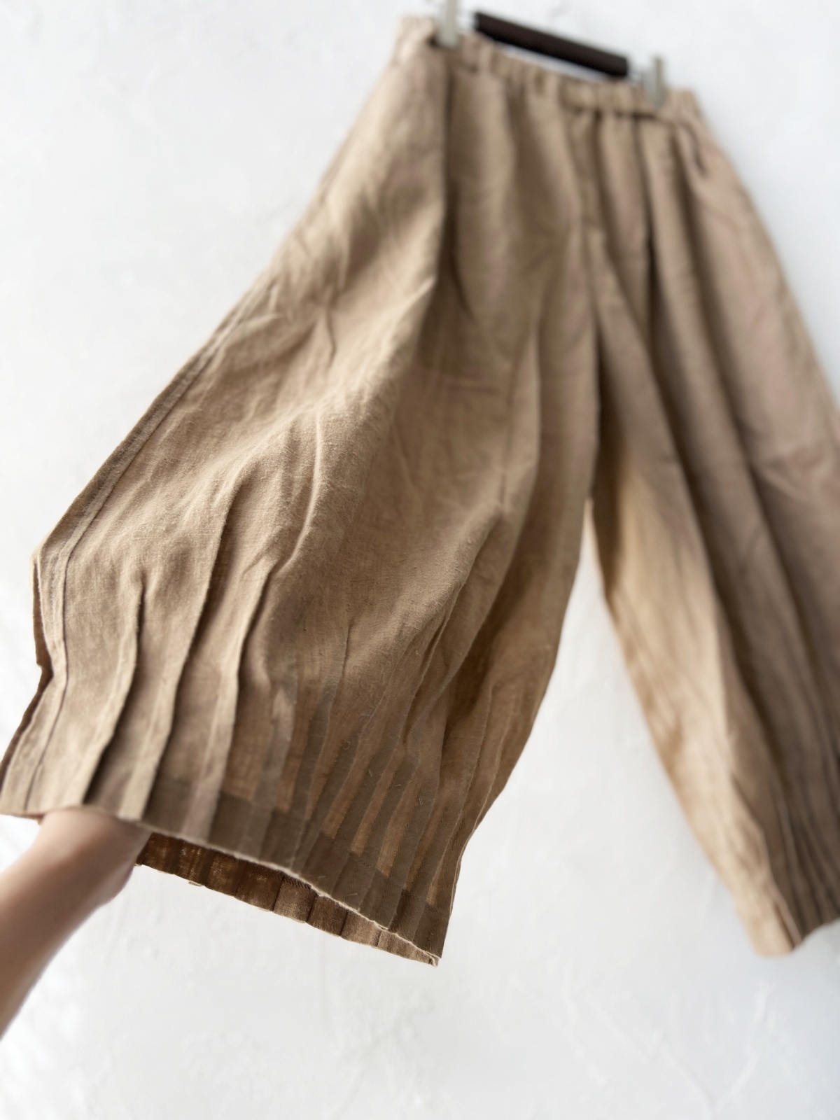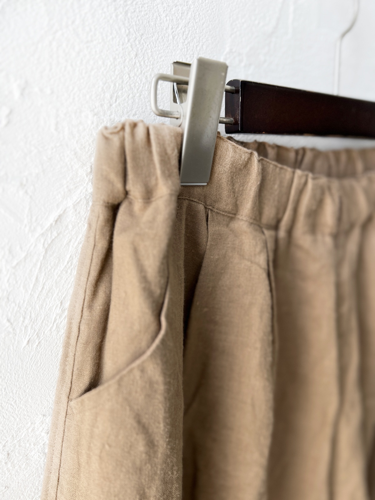 ほんのり起毛したリネンで柔らかな履き心地です。