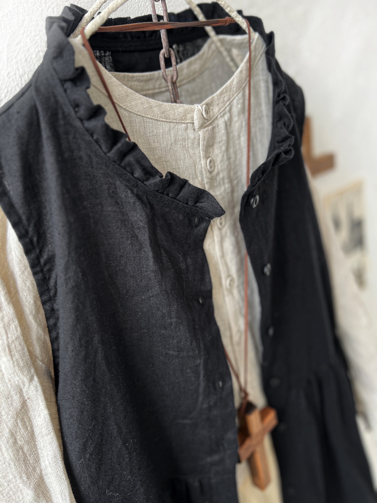襟元に控えめなフリルがあしらわれた