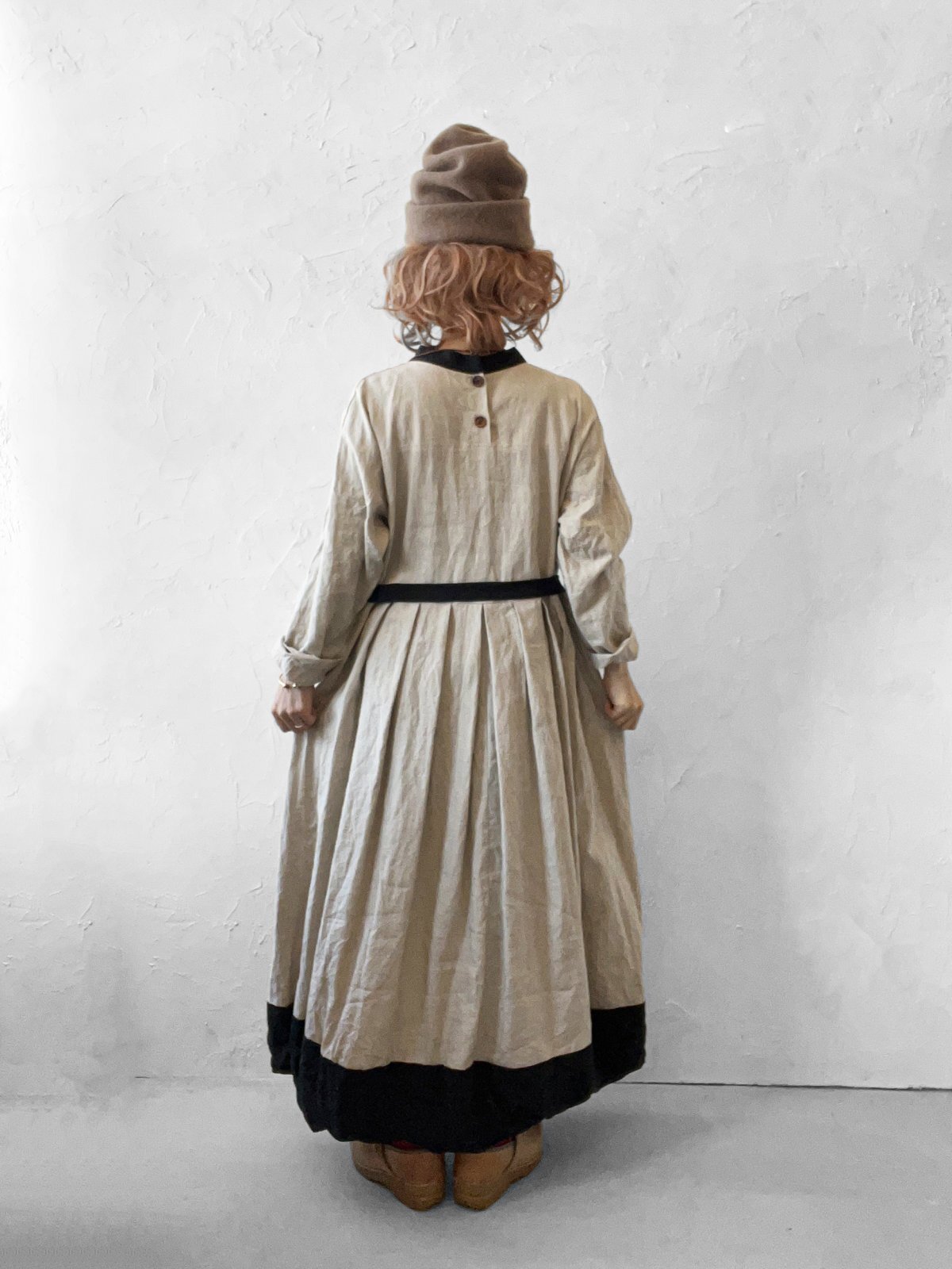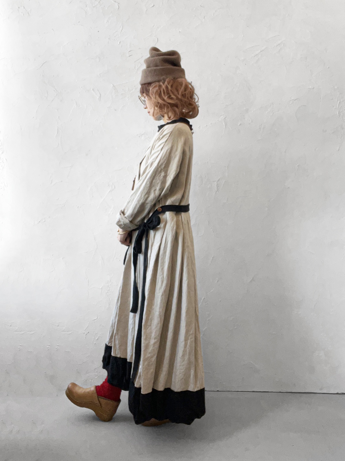 左サイドにタック。裾は黒リネンで巻いてあり、