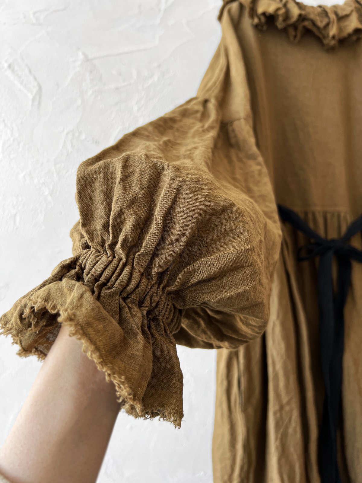 MARCHE' DE SOEUR/ラッフルウエストリボンワンピース・マスタードブラウン