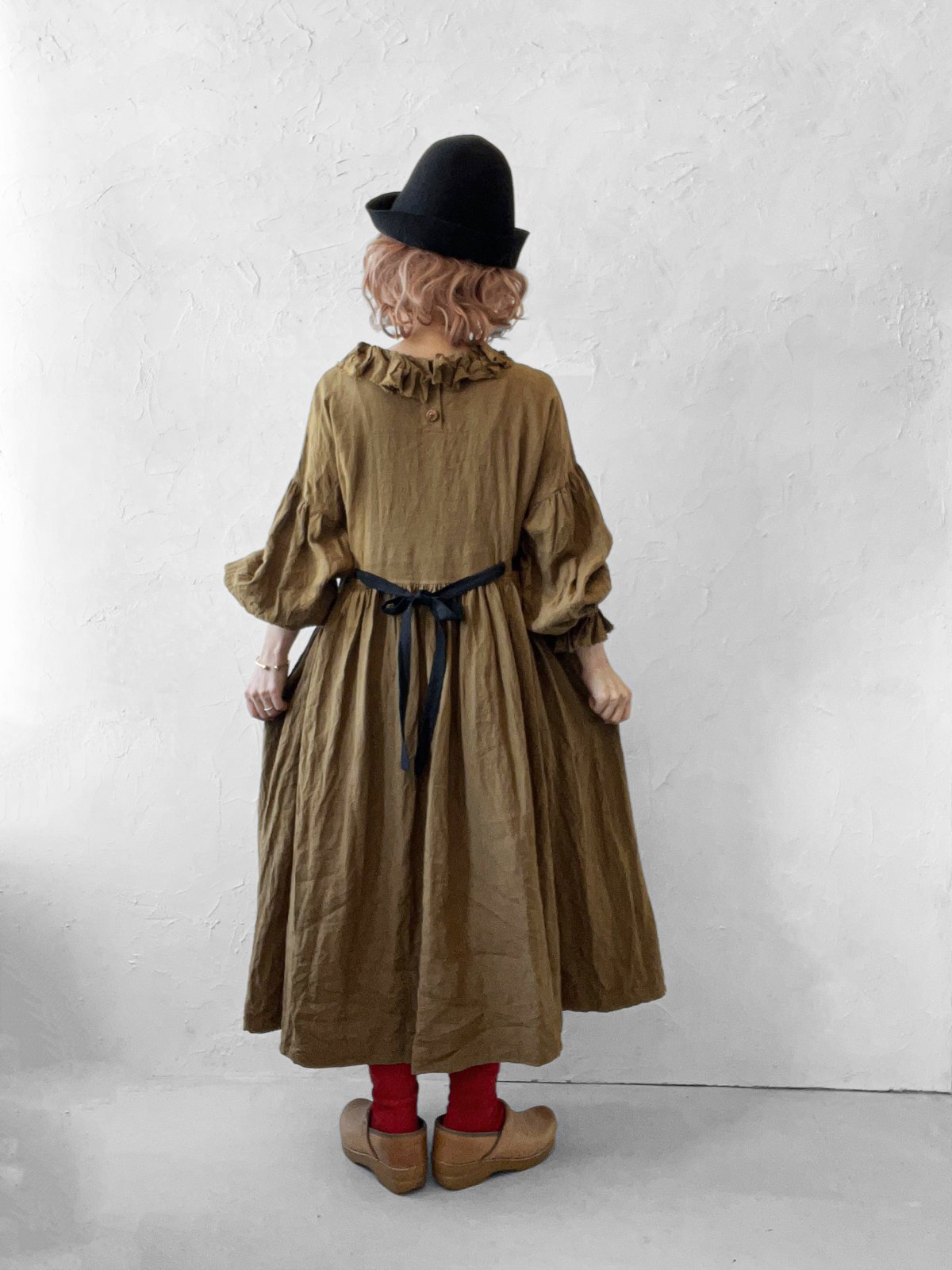 MARCHE' DE SOEUR/ラッフルウエストリボンワンピース・マスタードブラウン [MDS251005]