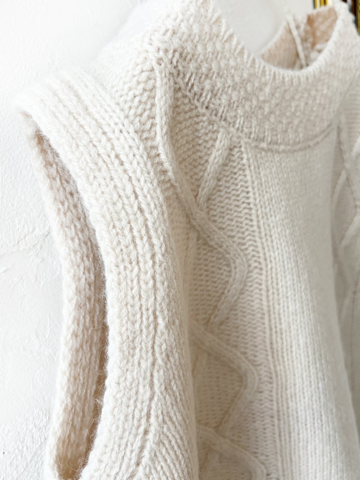フロントは編み模様、バックはスリットのデザインです。