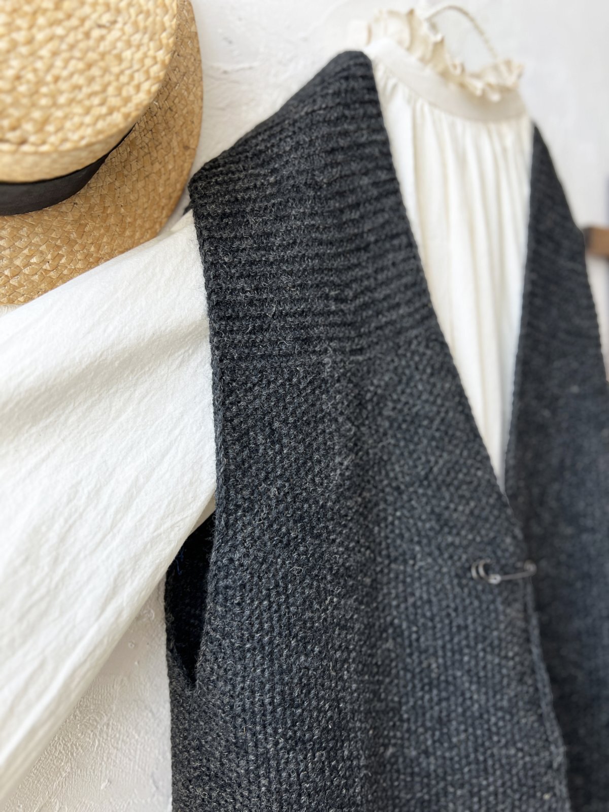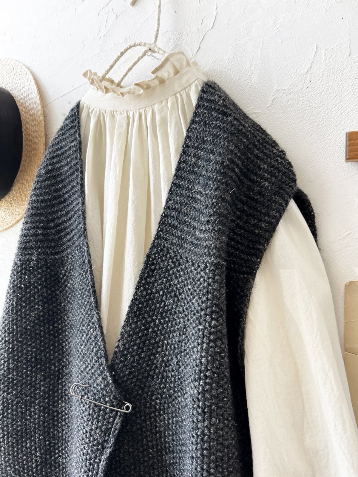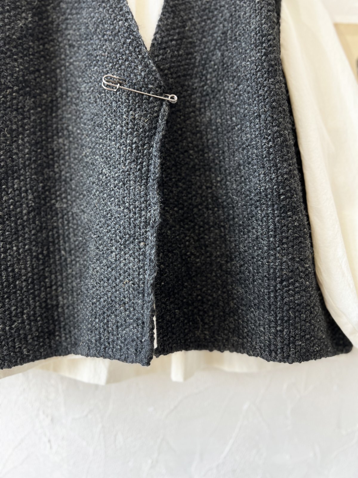 柄編みのシンプルなワイドベスト。どんなインナーにも