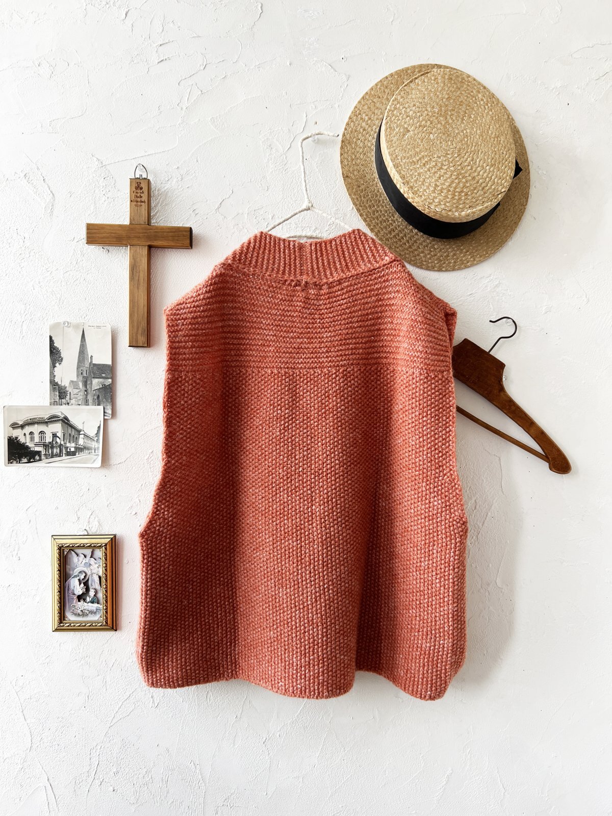 柄編みのシンプルなワイドベスト。どんなインナーにも