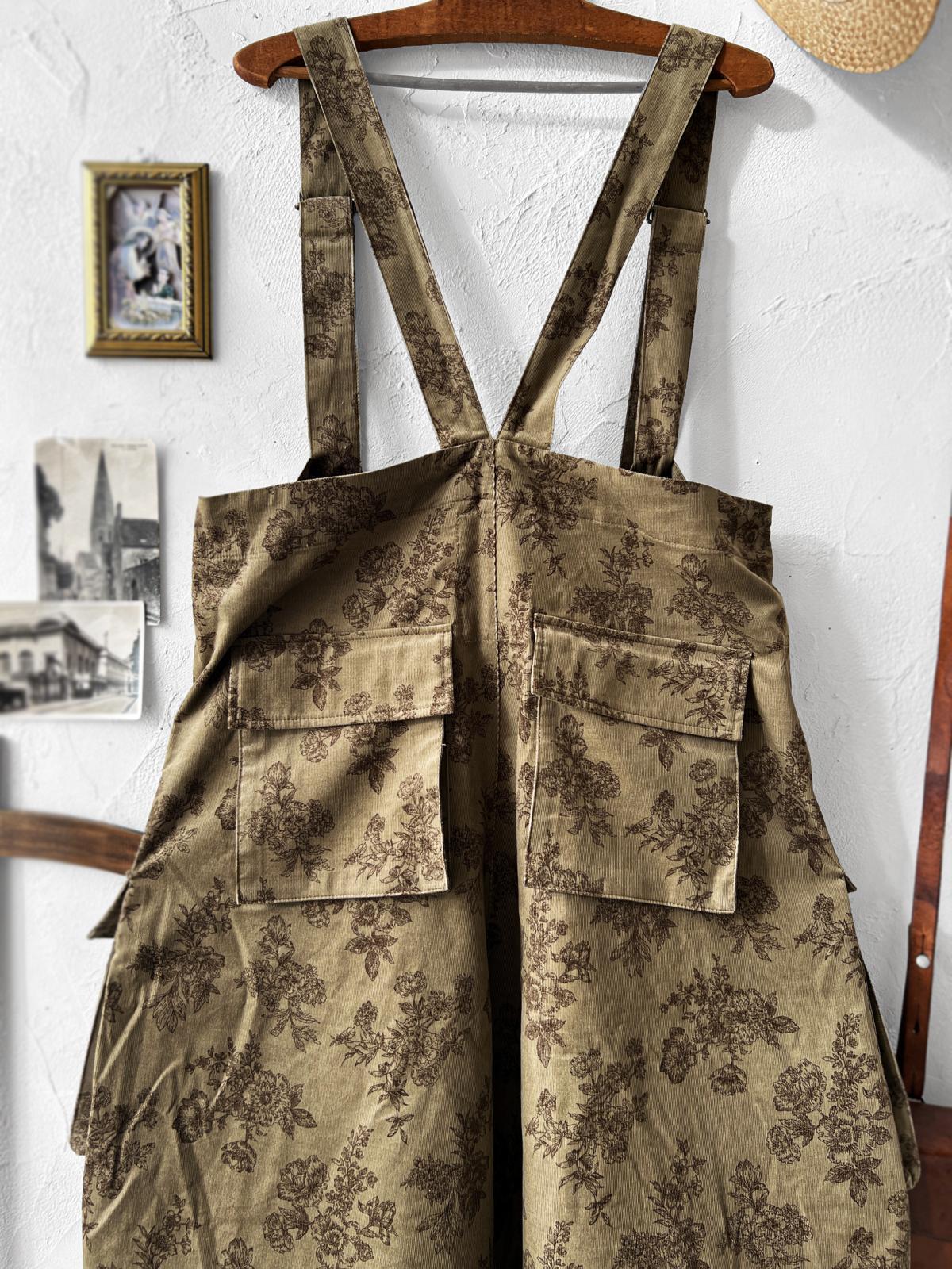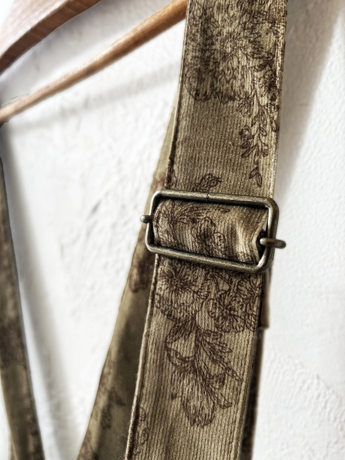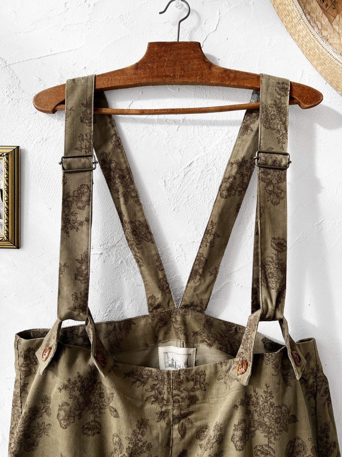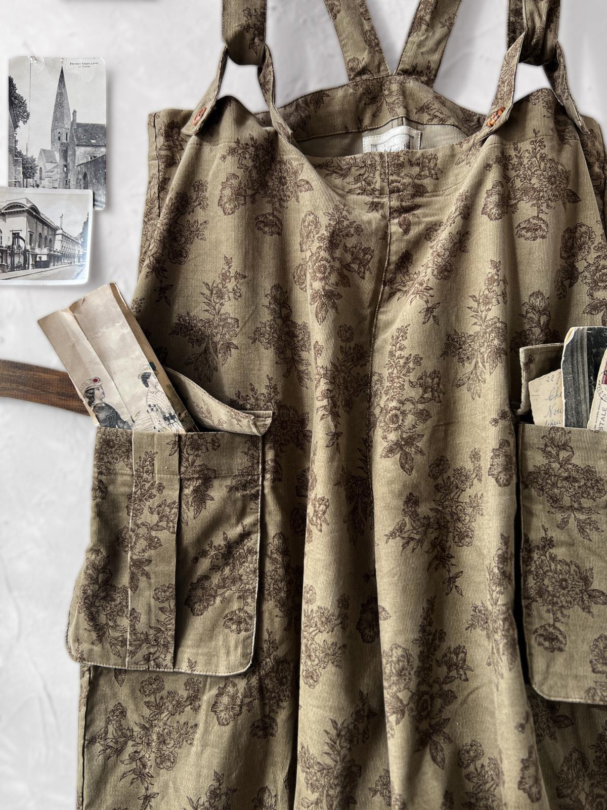 生地はカーキブラウンにボタニカル模様が入ったコールテン。