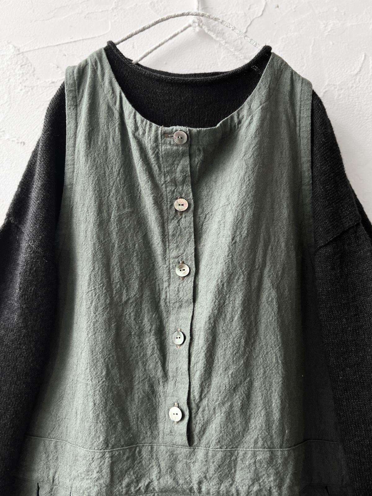 Libera&Capricciosa/天日干しリネンオーバーオール・ダークブルッシュグリーン [LIB251103]