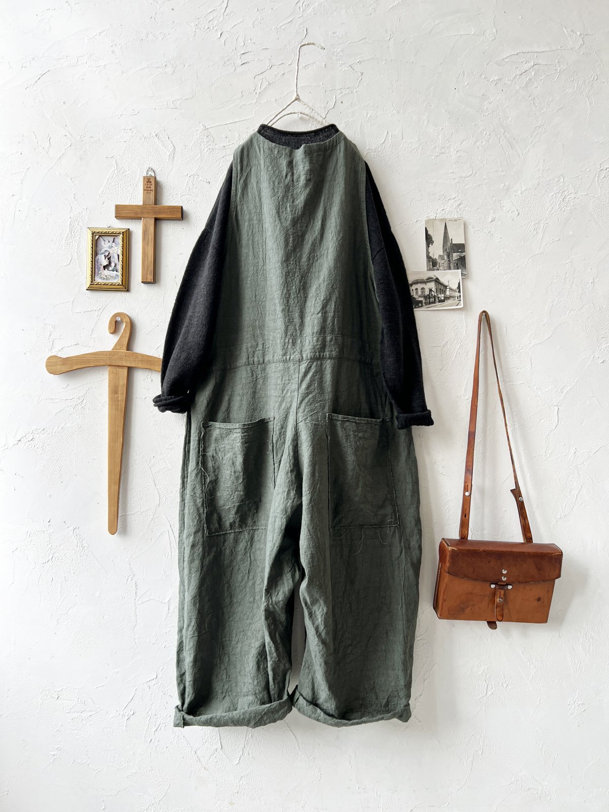 Libera&Capricciosa/天日干しリネンオーバーオール・ダークブルッシュグリーン