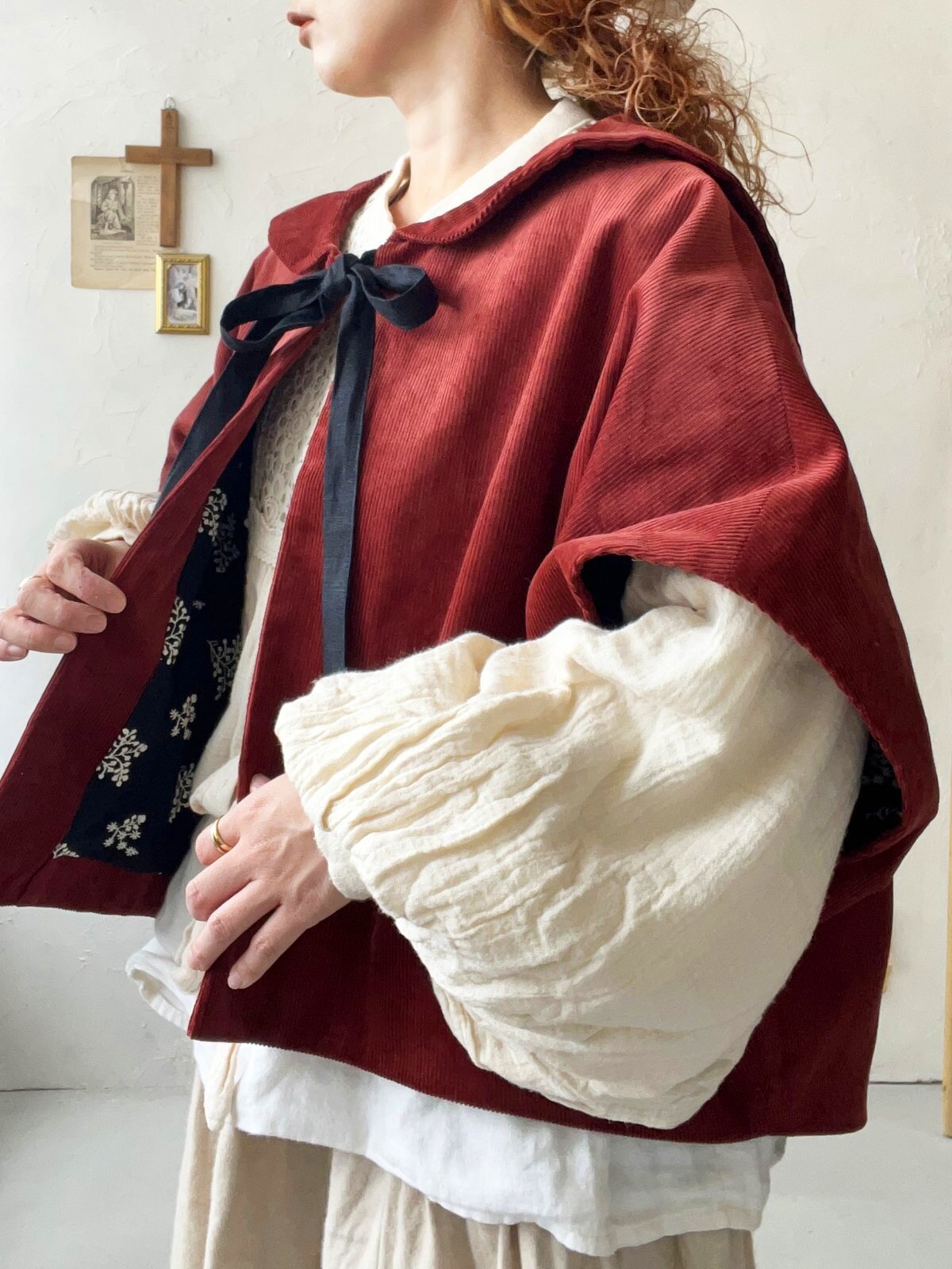 深みのあるお色の厚地コーデュロイに、裏地は