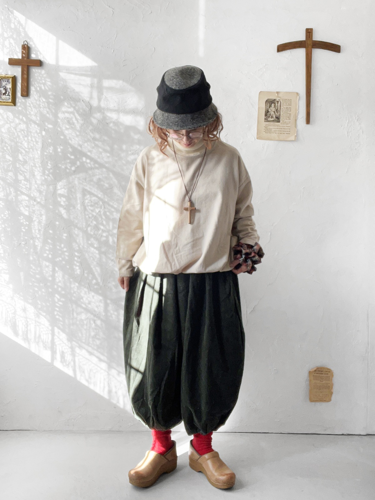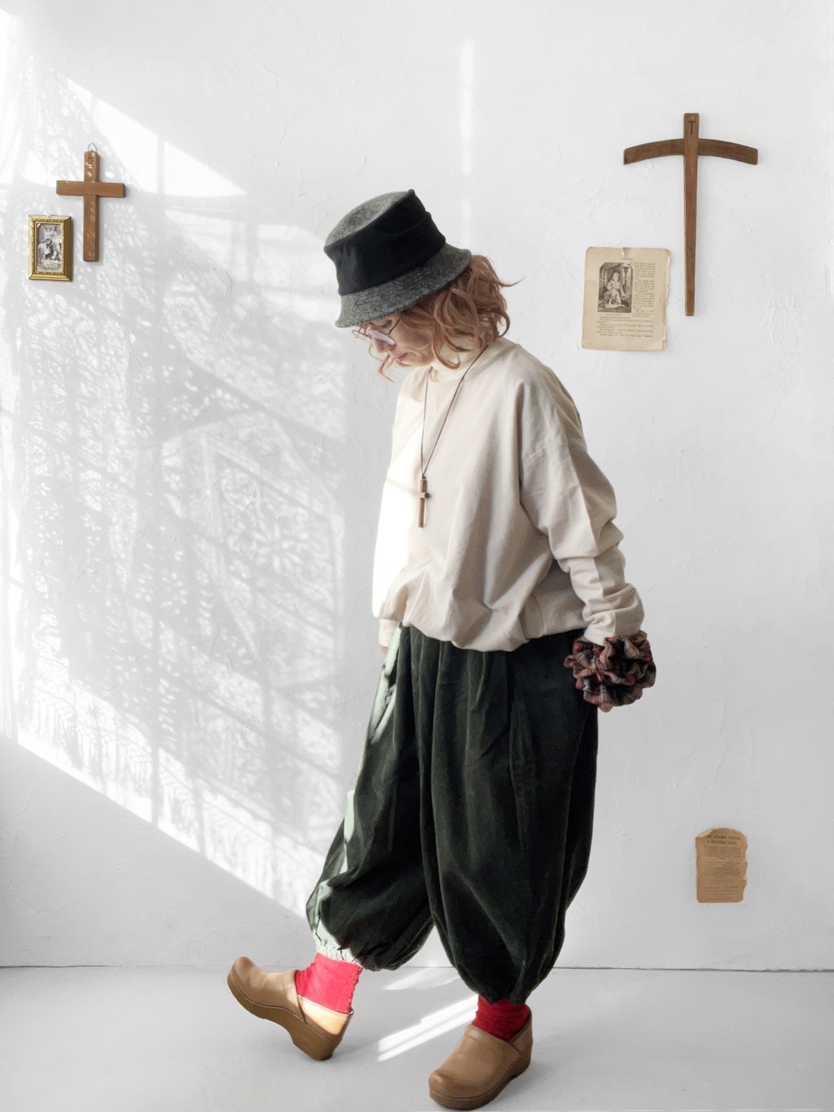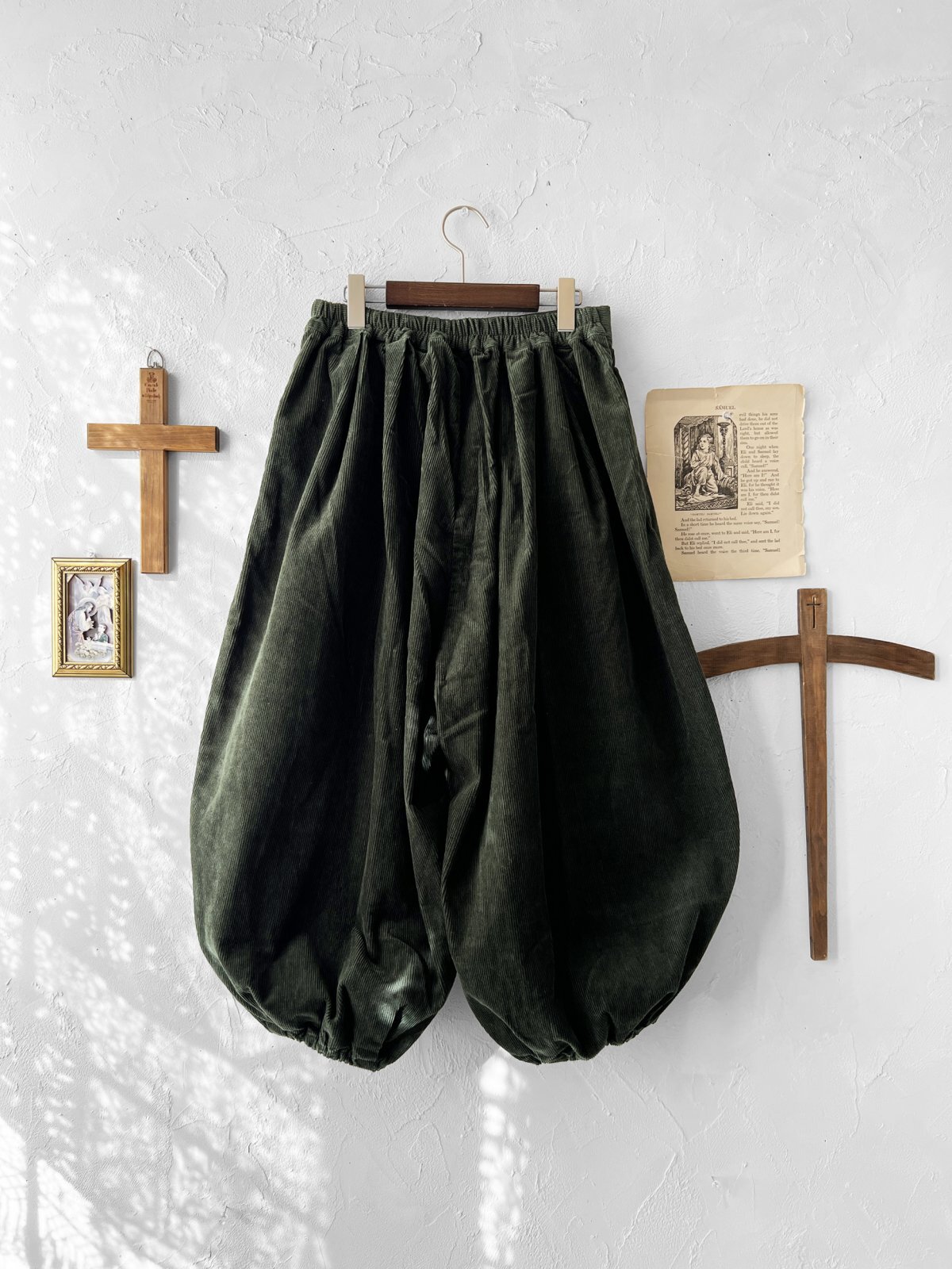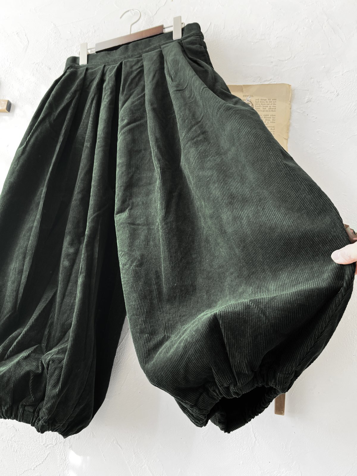 ほどよい厚地コーデュロイのバルーンパンツ。