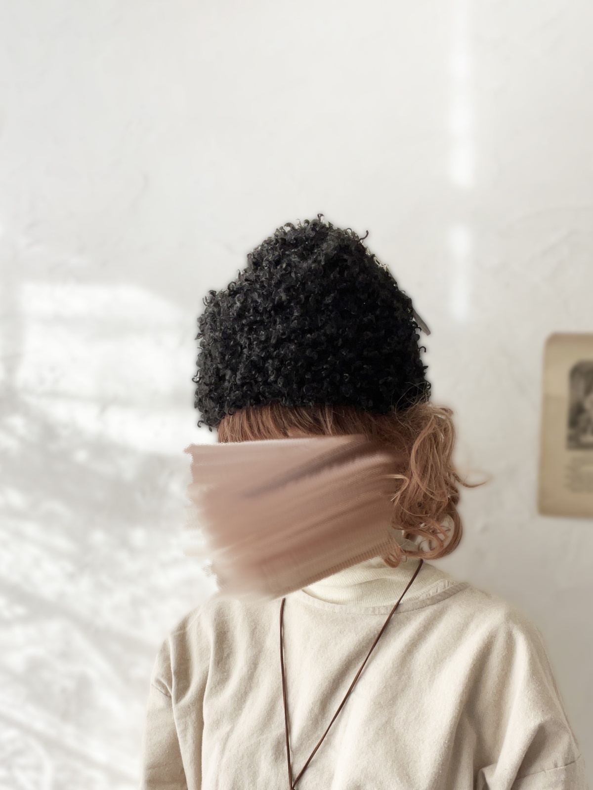 羊帽子店/12-8 くるくる羊カーリーどんぐり帽子・ブラック
