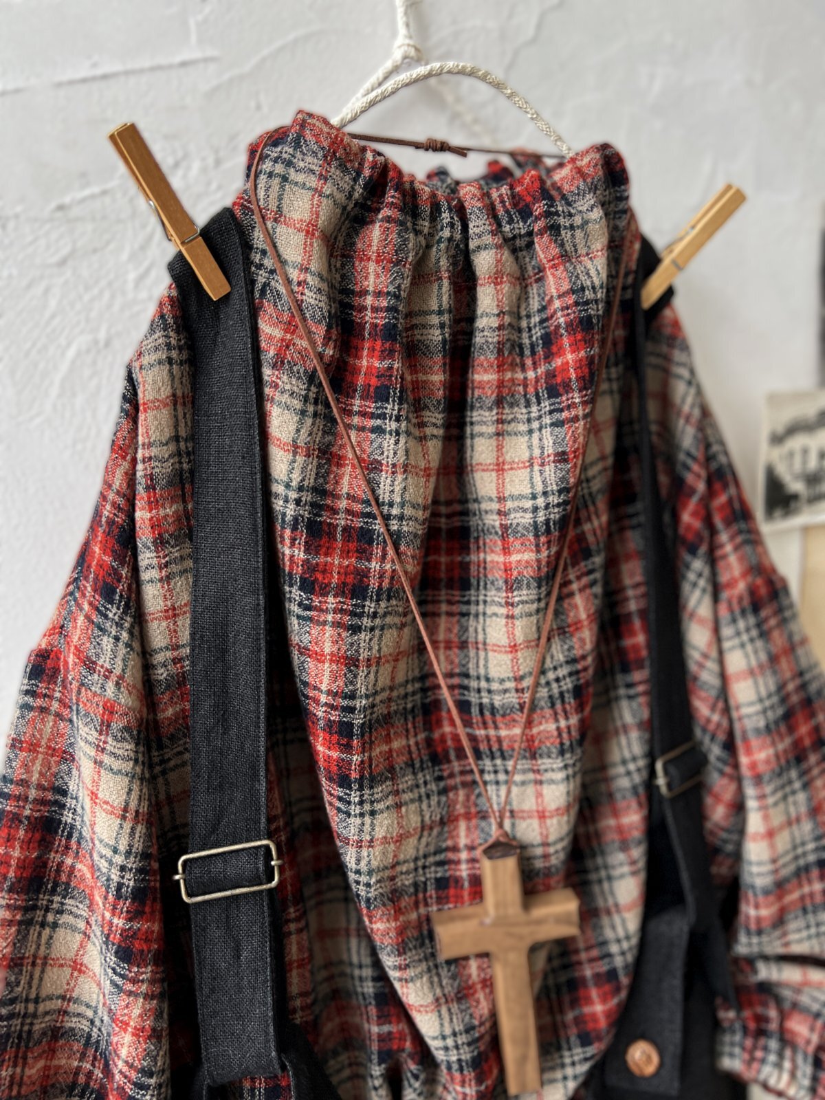 MARCHE' DE SOEUR/ウールガーゼのバルーンチュニック・ベージュチェック [MDS251210]